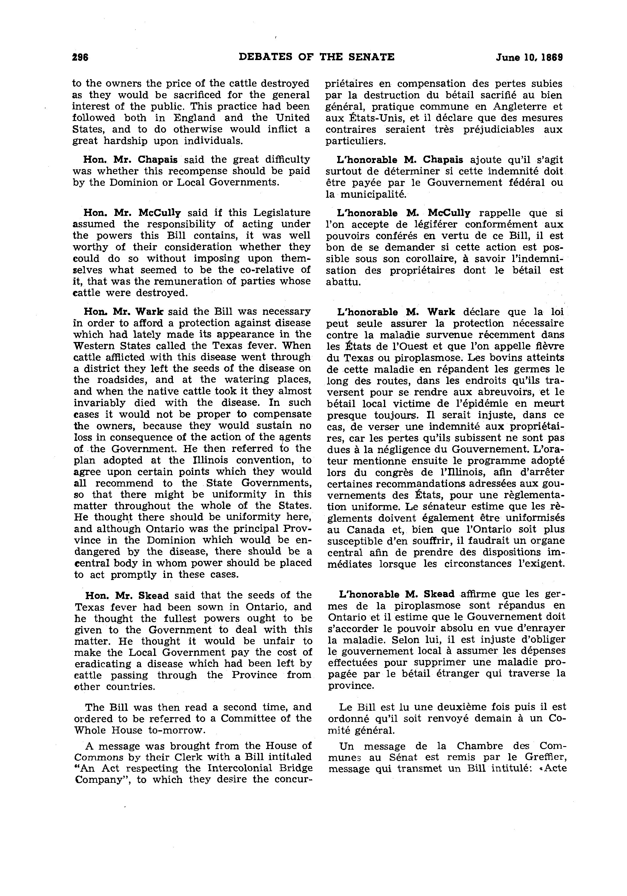 Debates of the Senate = Débats du Sénat [1869] : 1869