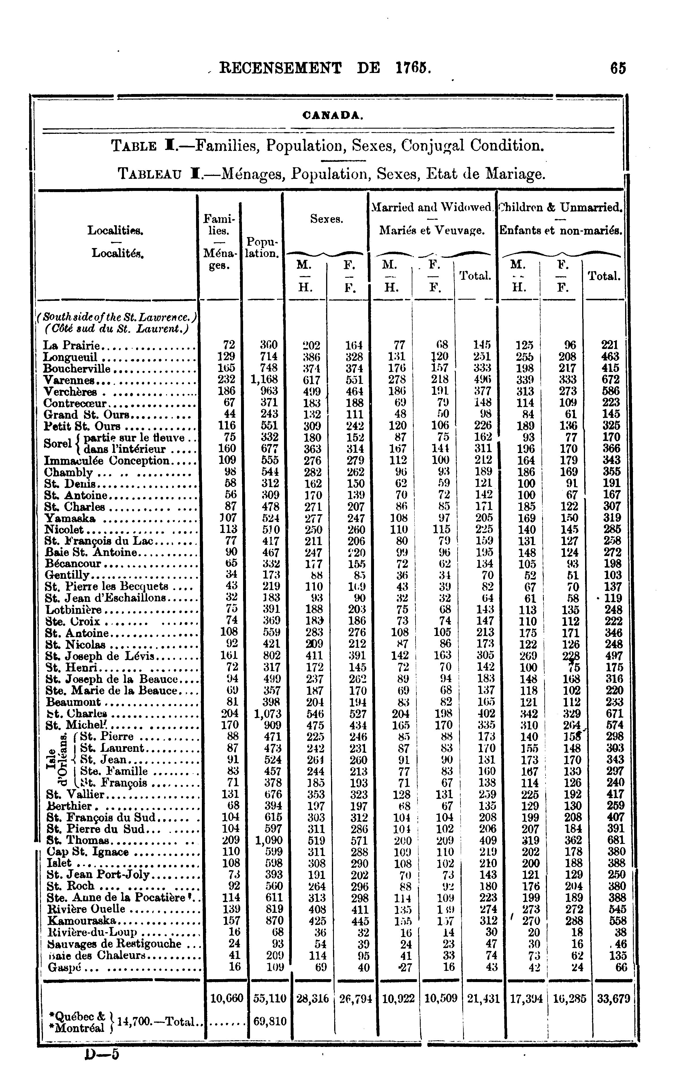 Census of Canada, 1665 to 1871 : statistics of Canada = Recensement du Canada, 1665 to 1871 : statistiques du Canada.