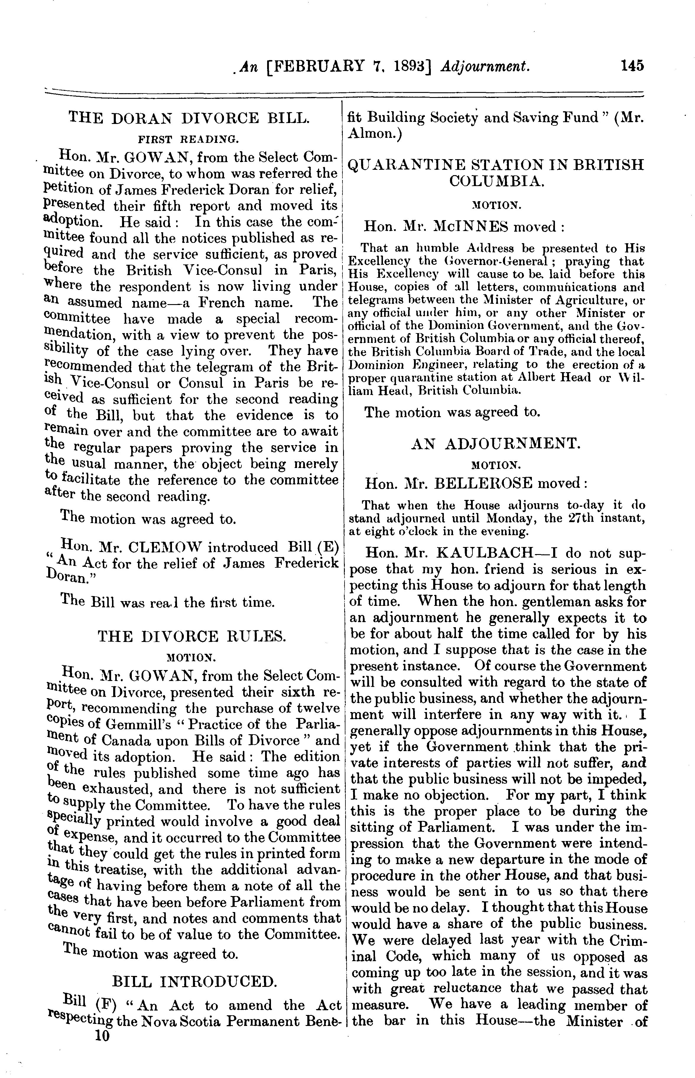 Debates and proceedings of the Senate of Canada : Debates of the Senate of the Dominion of Canada, 1893 : third session, seventh Parliament : 1893