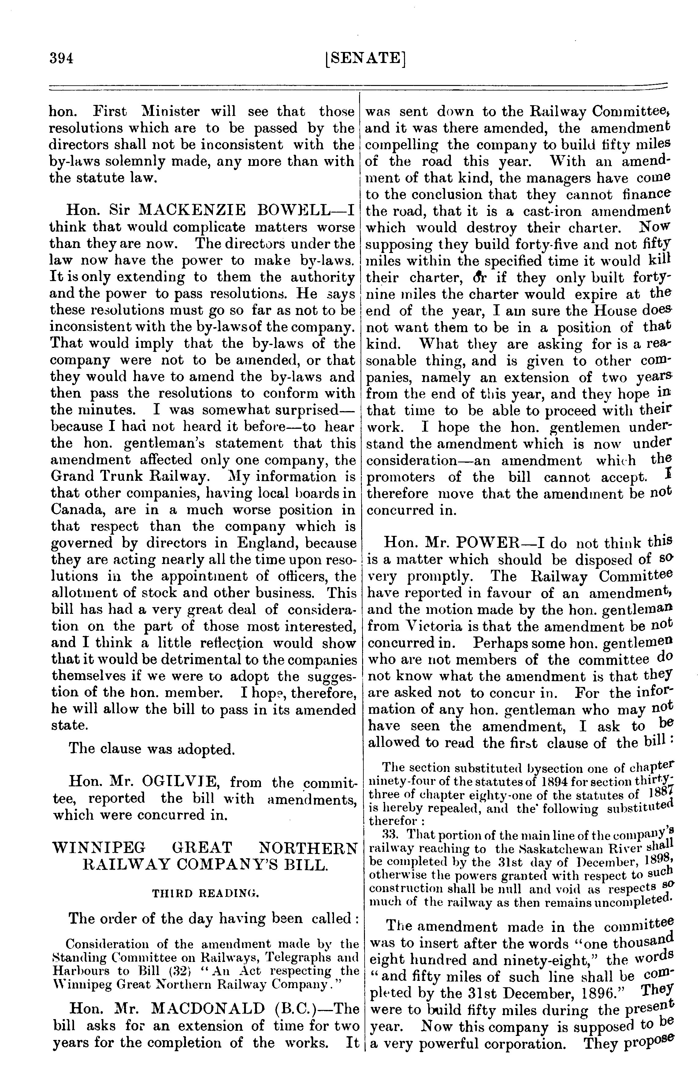 Debates of the Senate of the Dominion of Canada, 1896 : sixth session, seventh Parliament : 1896