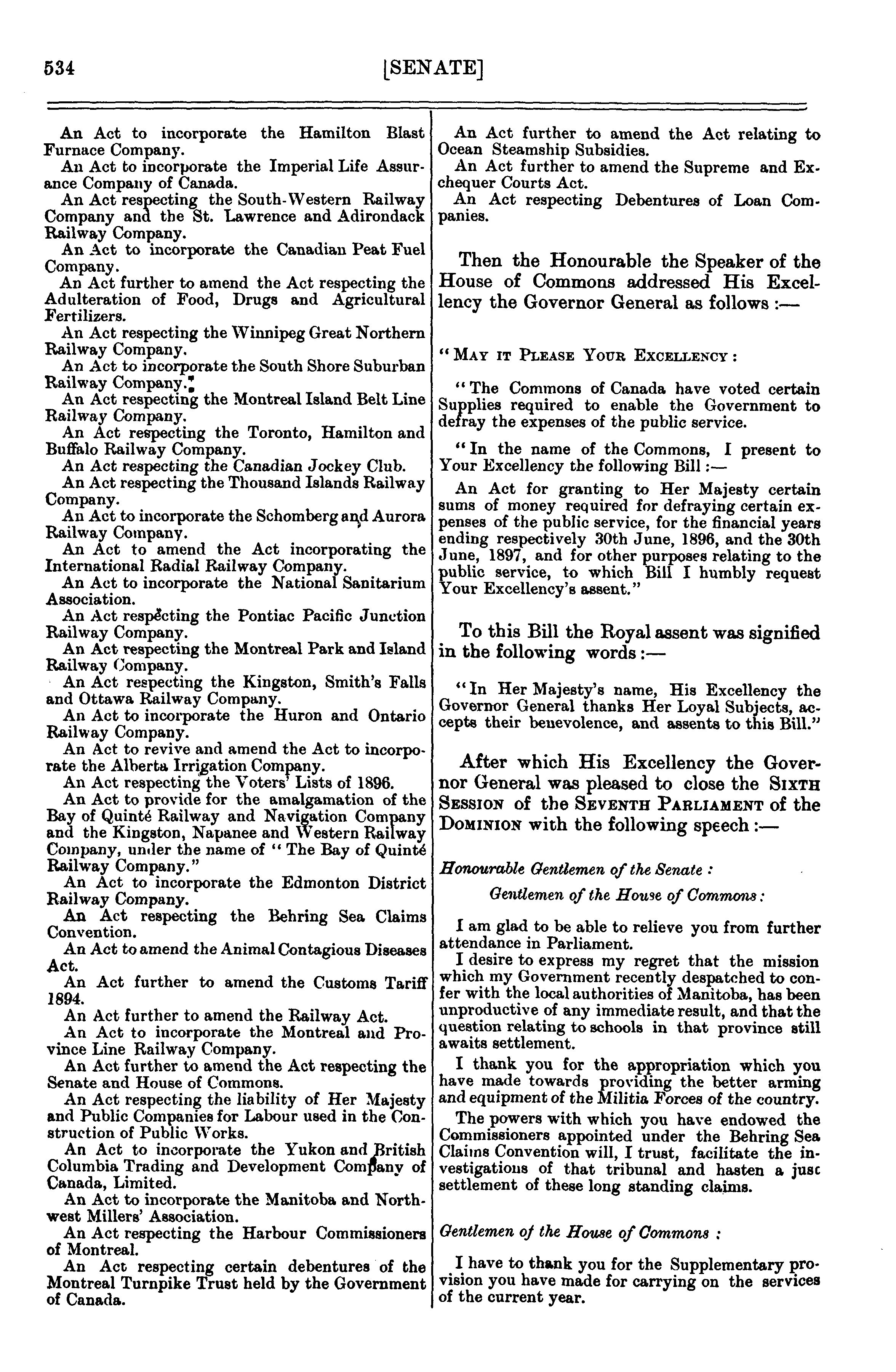 Debates of the Senate of the Dominion of Canada, 1896 : sixth session, seventh Parliament : 1896