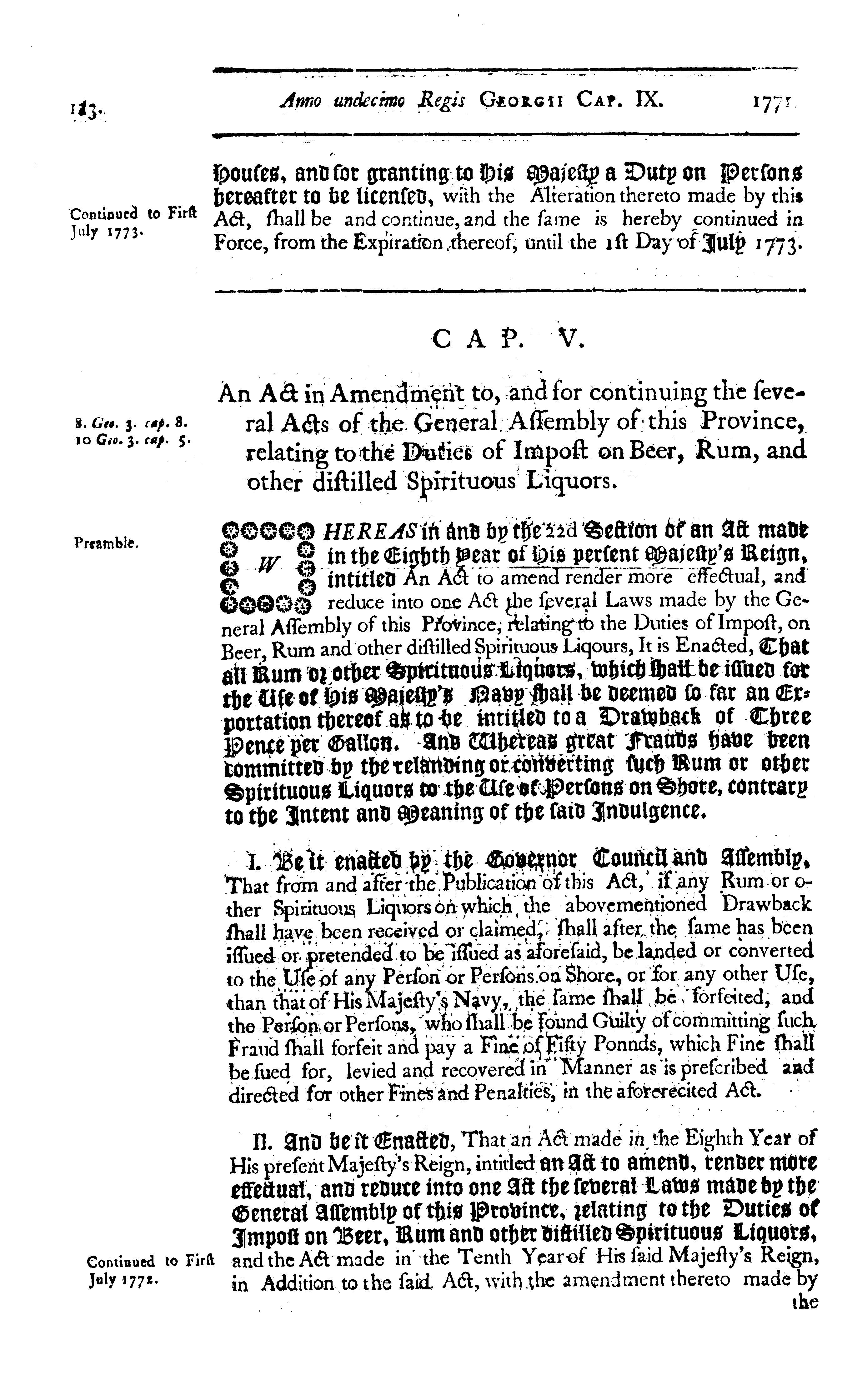 - [The temporary acts of the general assemblies of His Majesty's province of Nova Scotia : being the second session of the fifth General Assembly convened in the said province] : Temporary - 1771 (Acts 1-13) (p. 110-116 [i.e. 121])