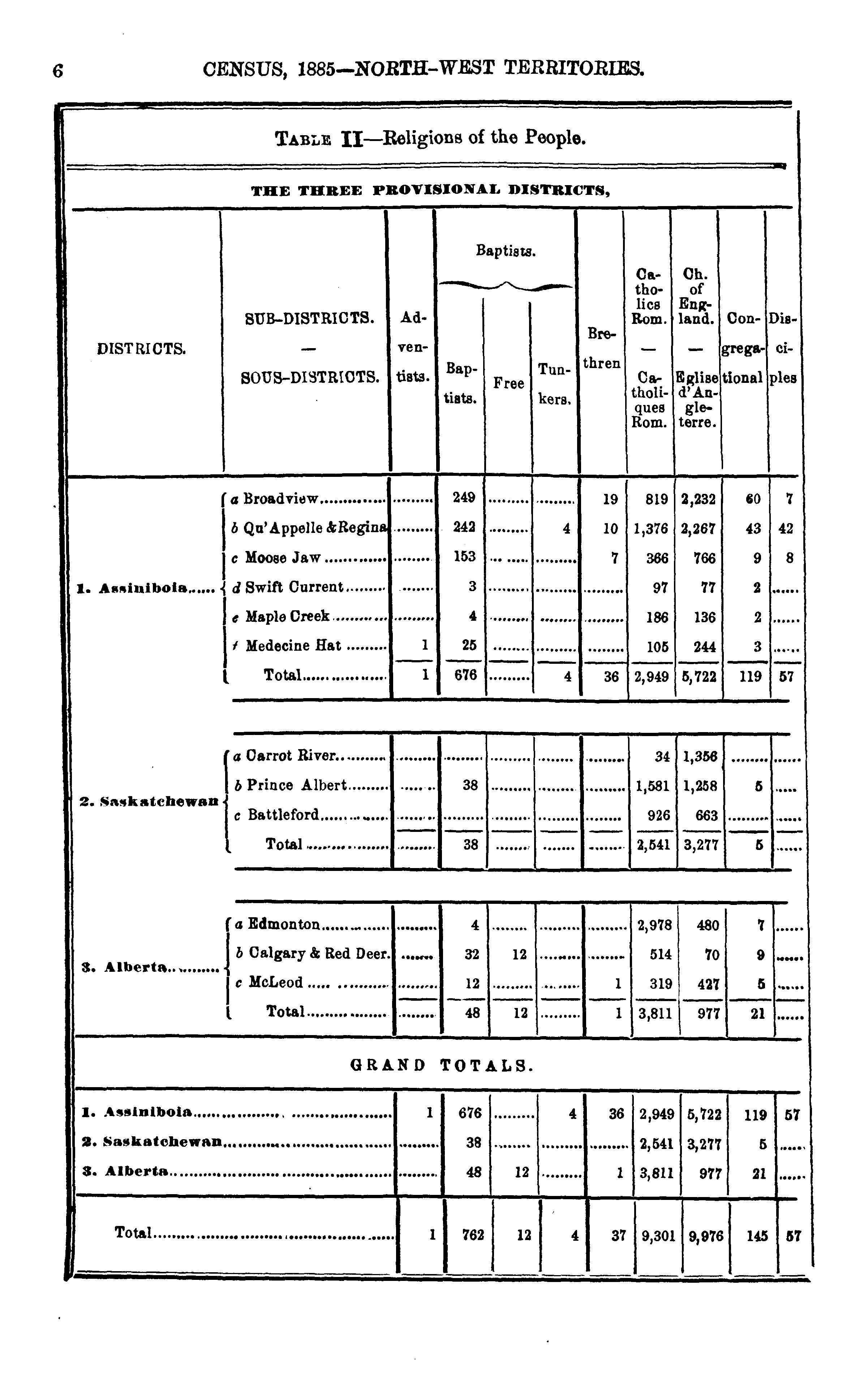 Census of the three provisional districts of the North-West Territories, 1884-5 = Recensement des trois districts provisoires des Territoires du Nord-Ouest, 1884-5. - Adresse bibliographique