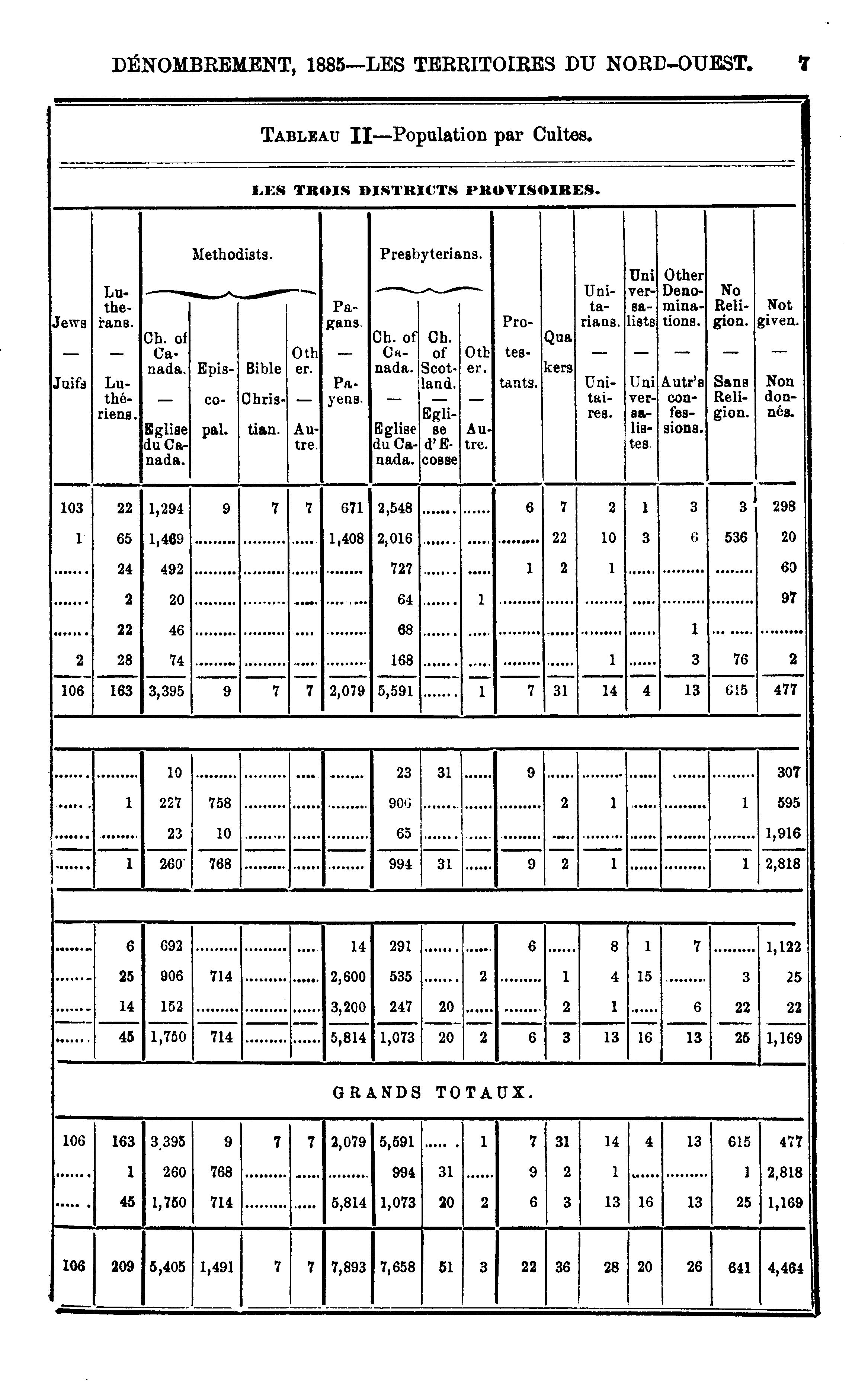 Census of the three provisional districts of the North-West Territories, 1884-5 = Recensement des trois districts provisoires des Territoires du Nord-Ouest, 1884-5. - Adresse bibliographique