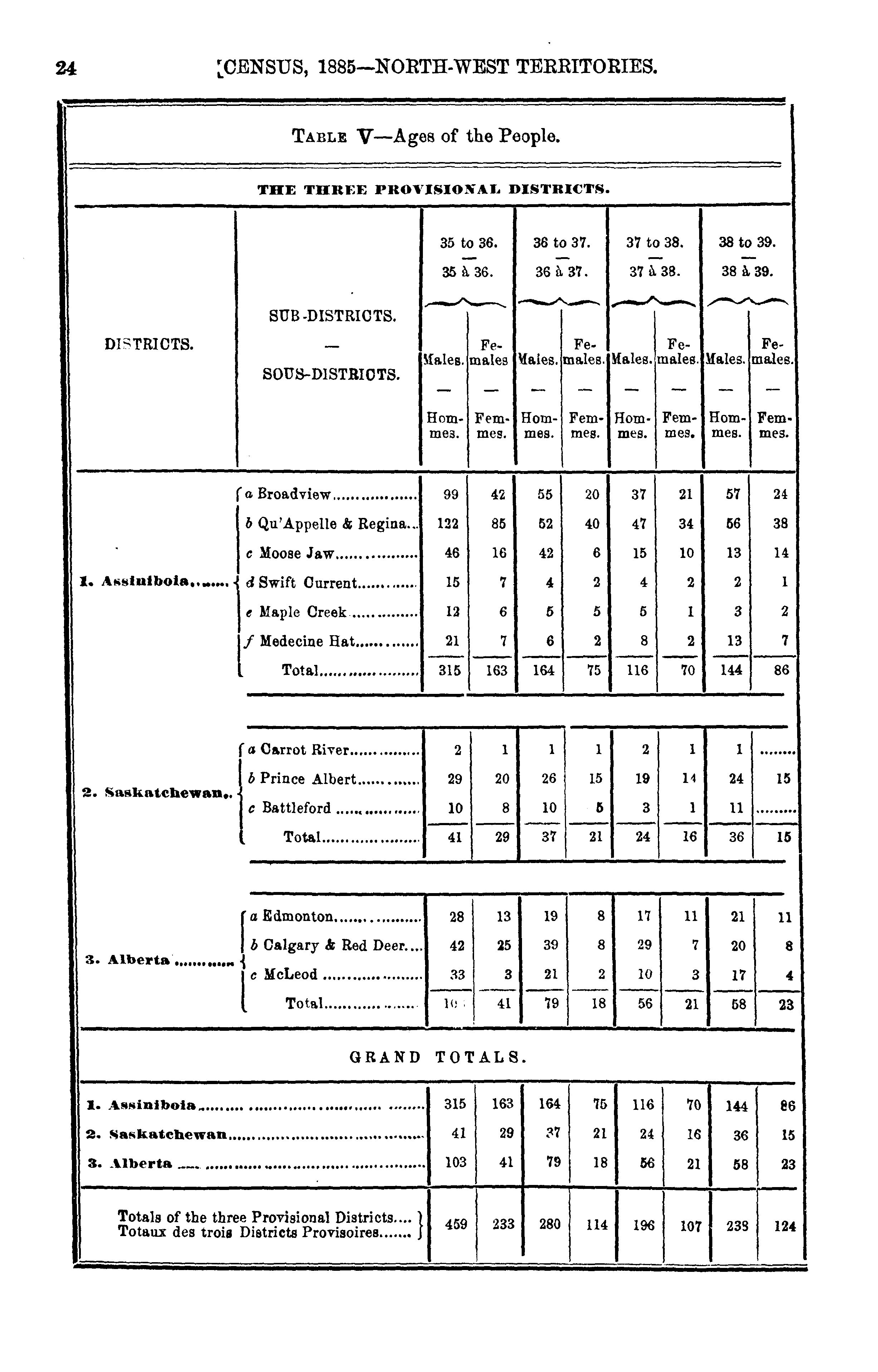 Census of the three provisional districts of the North-West Territories, 1884-5 = Recensement des trois districts provisoires des Territoires du Nord-Ouest, 1884-5. - Adresse bibliographique
