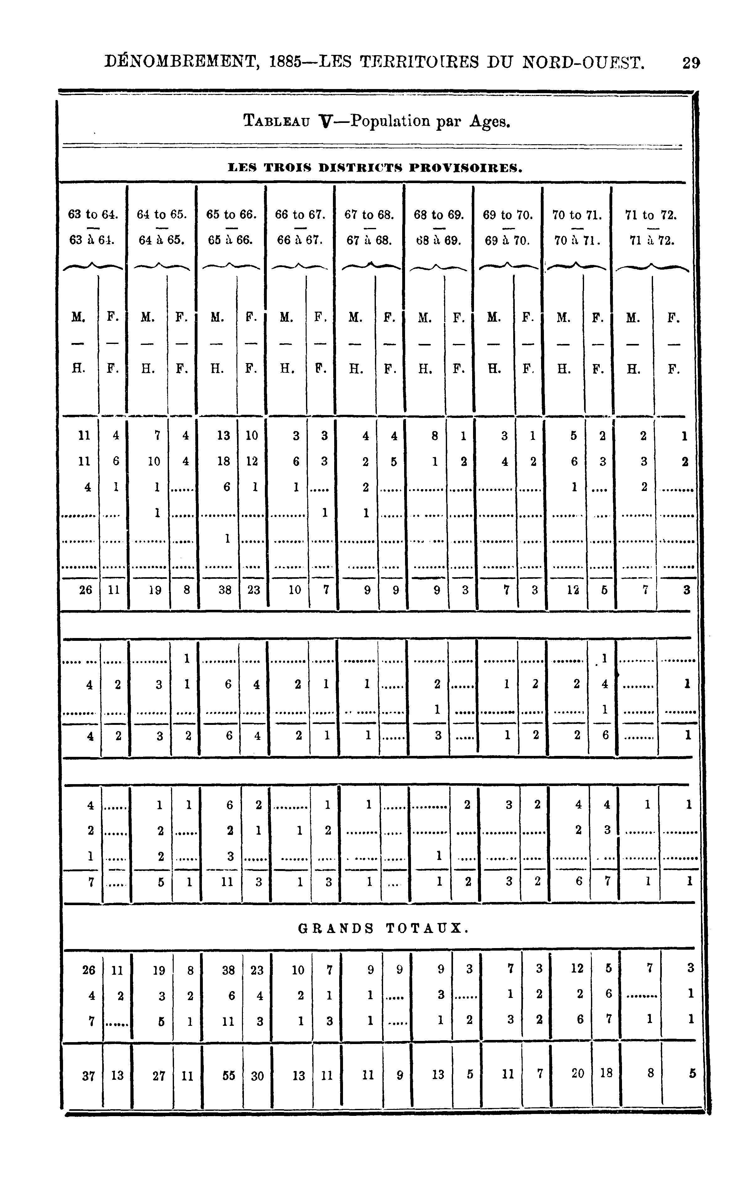 Census of the three provisional districts of the North-West Territories, 1884-5 = Recensement des trois districts provisoires des Territoires du Nord-Ouest, 1884-5. - Adresse bibliographique