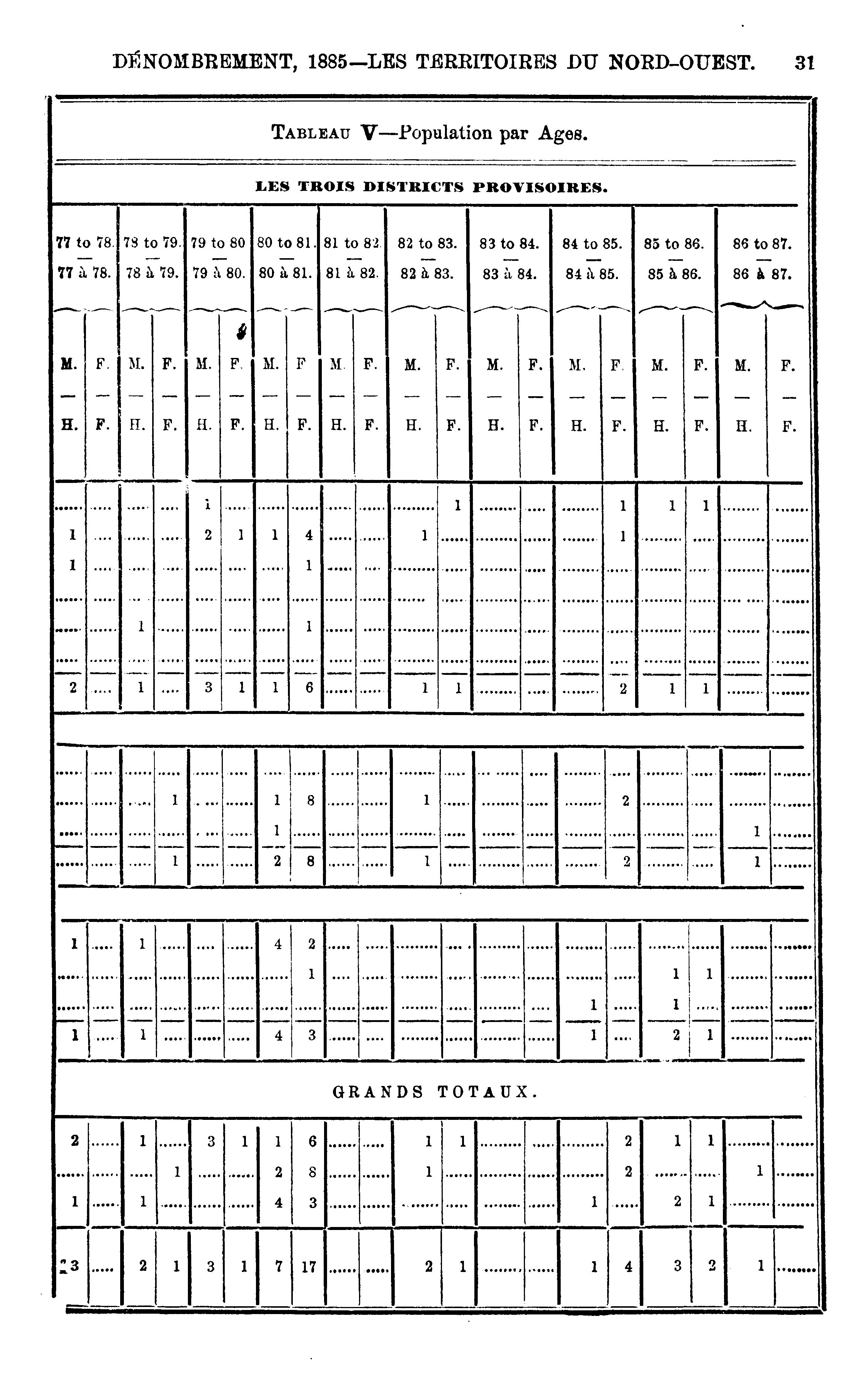 Census of the three provisional districts of the North-West Territories, 1884-5 = Recensement des trois districts provisoires des Territoires du Nord-Ouest, 1884-5. - Adresse bibliographique