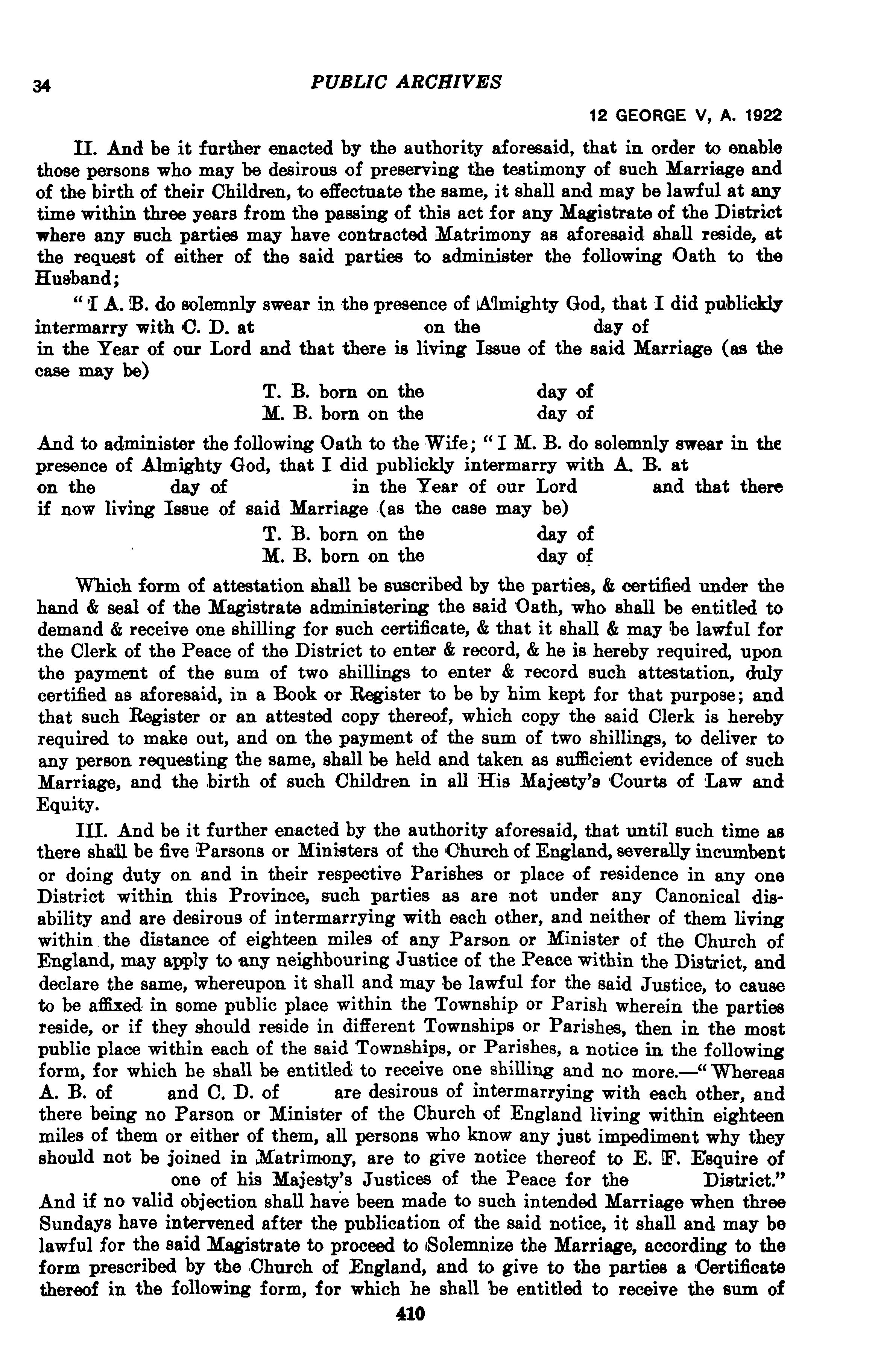 At head of title: 12 George V. Sessional paper No. 30. A. 1922.