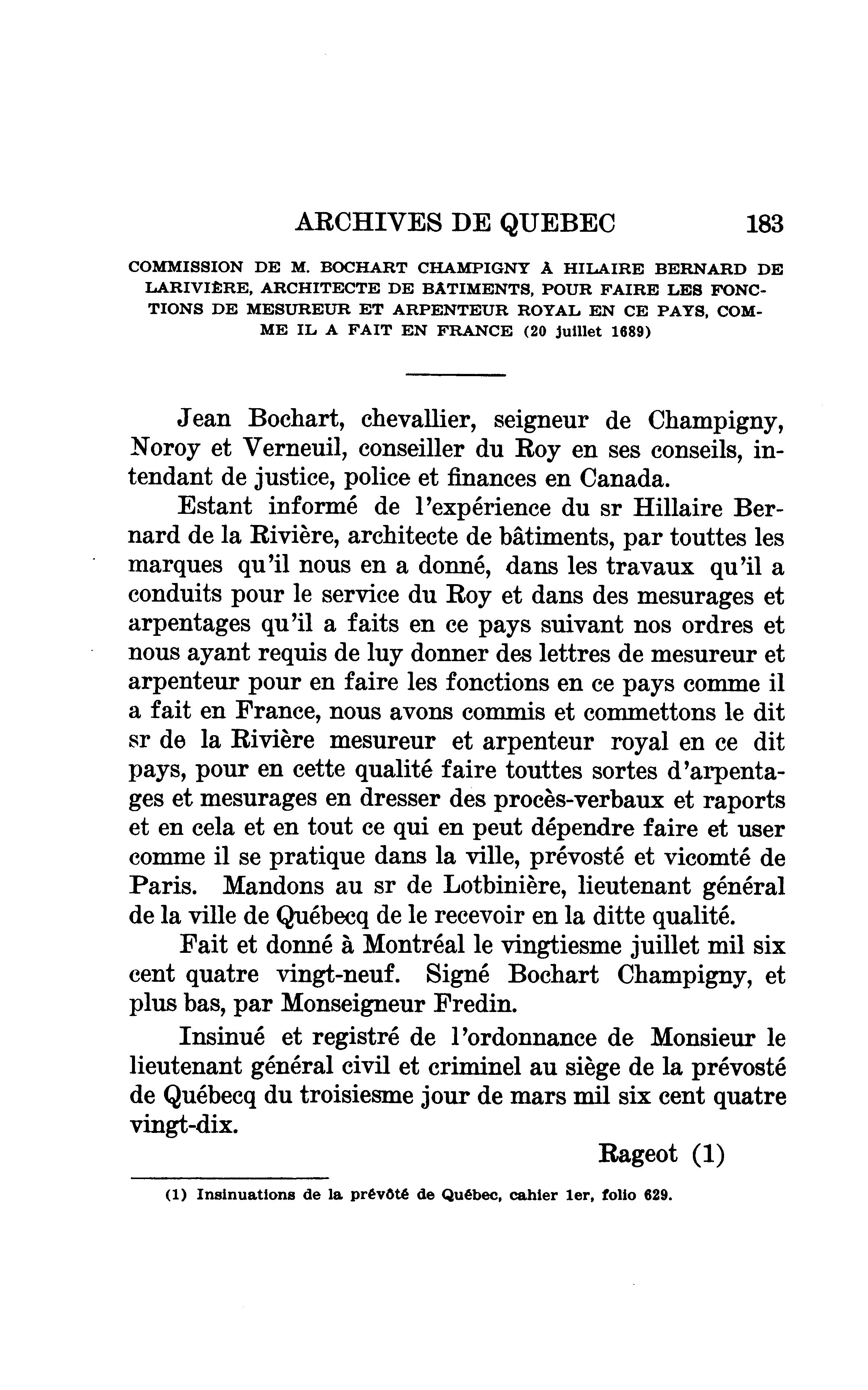 En tête du titre: Archives de la Province de Québec.