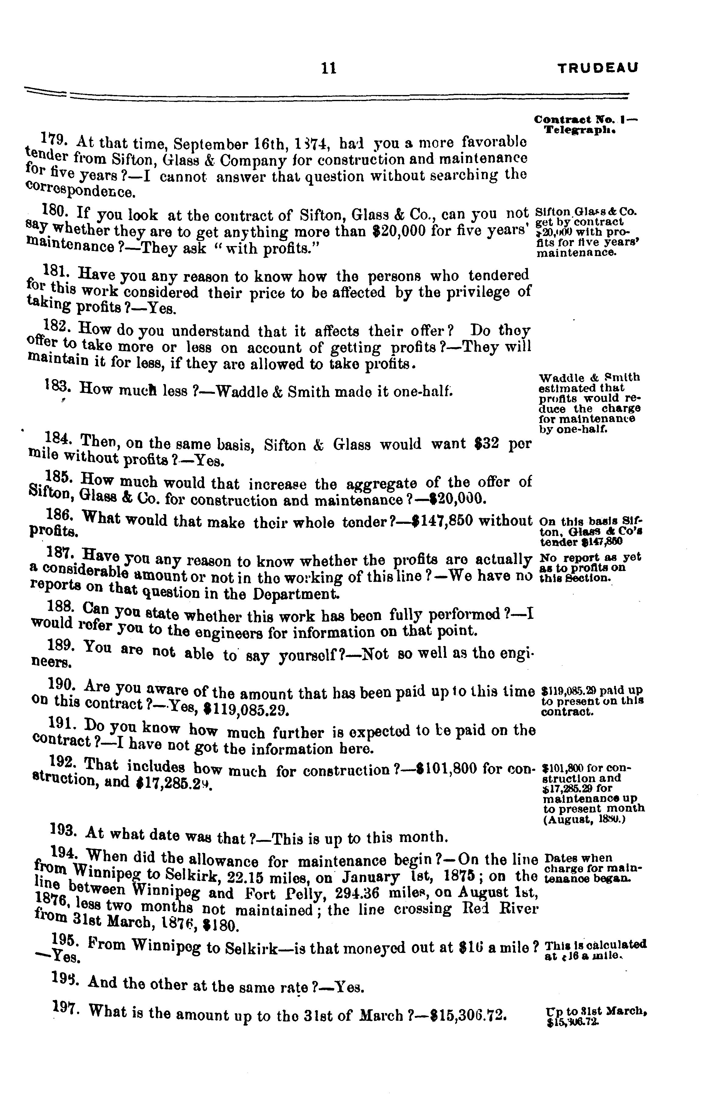 The commission was appointed "to make enquiry into and concerning all facts connected with, and the conduct and prosecution of, the Canadian Pacific Railway from its inception ..."--p. 29. The report has information on surveys, location of the route, and on contracts. The introduction of 25 pages by N. Flood Davin gives a valuable review of events connected with overland communication to the Pacific.