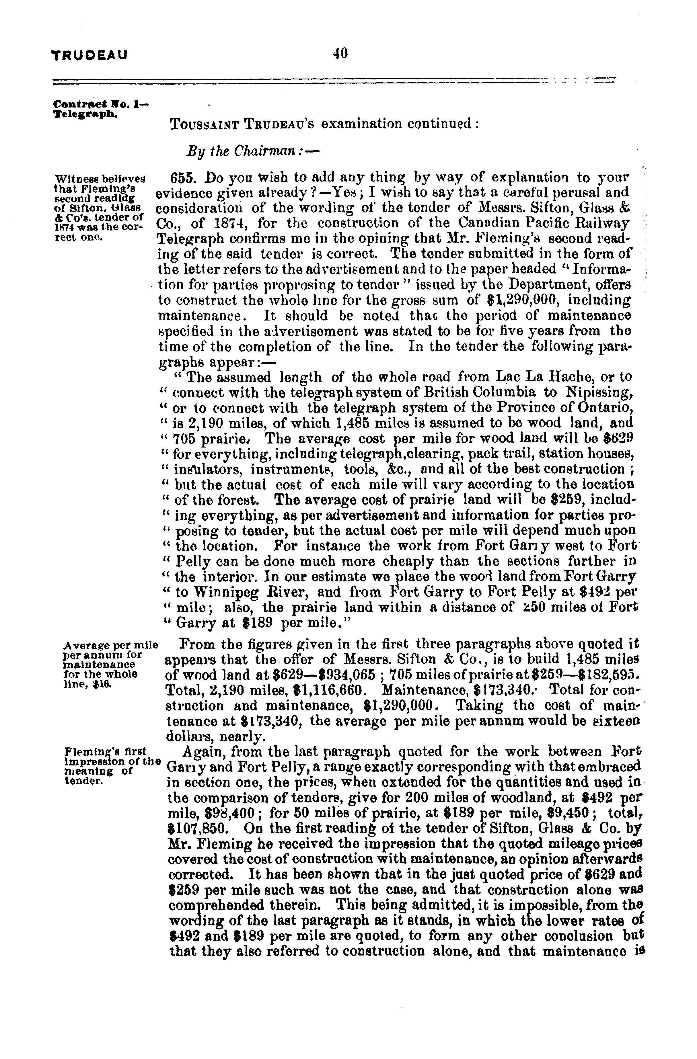 The commission was appointed "to make enquiry into and concerning all facts connected with, and the conduct and prosecution of, the Canadian Pacific Railway from its inception ..."--p. 29. The report has information on surveys, location of the route, and on contracts. The introduction of 25 pages by N. Flood Davin gives a valuable review of events connected with overland communication to the Pacific.