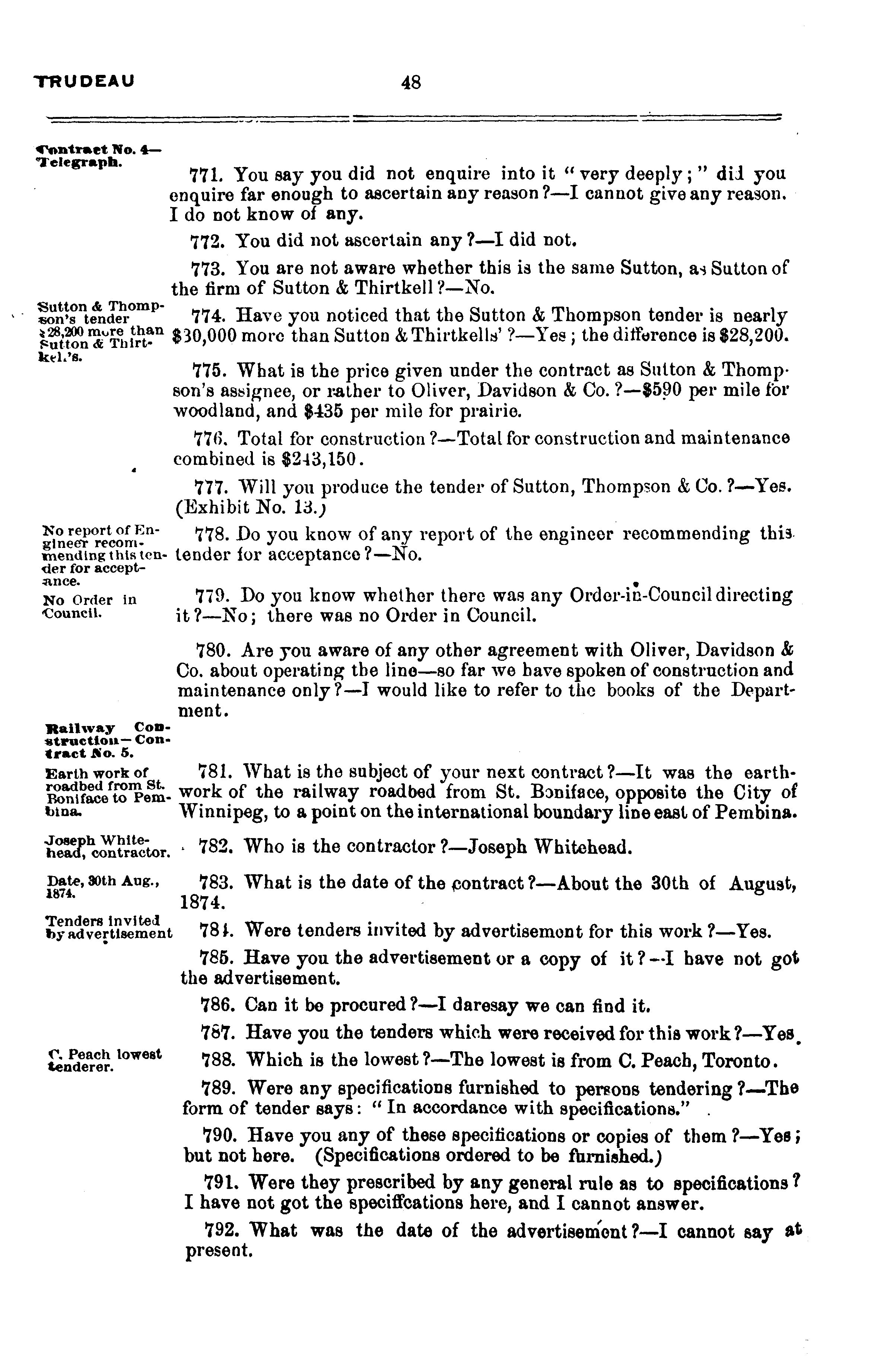 The commission was appointed "to make enquiry into and concerning all facts connected with, and the conduct and prosecution of, the Canadian Pacific Railway from its inception ..."--p. 29. The report has information on surveys, location of the route, and on contracts. The introduction of 25 pages by N. Flood Davin gives a valuable review of events connected with overland communication to the Pacific.