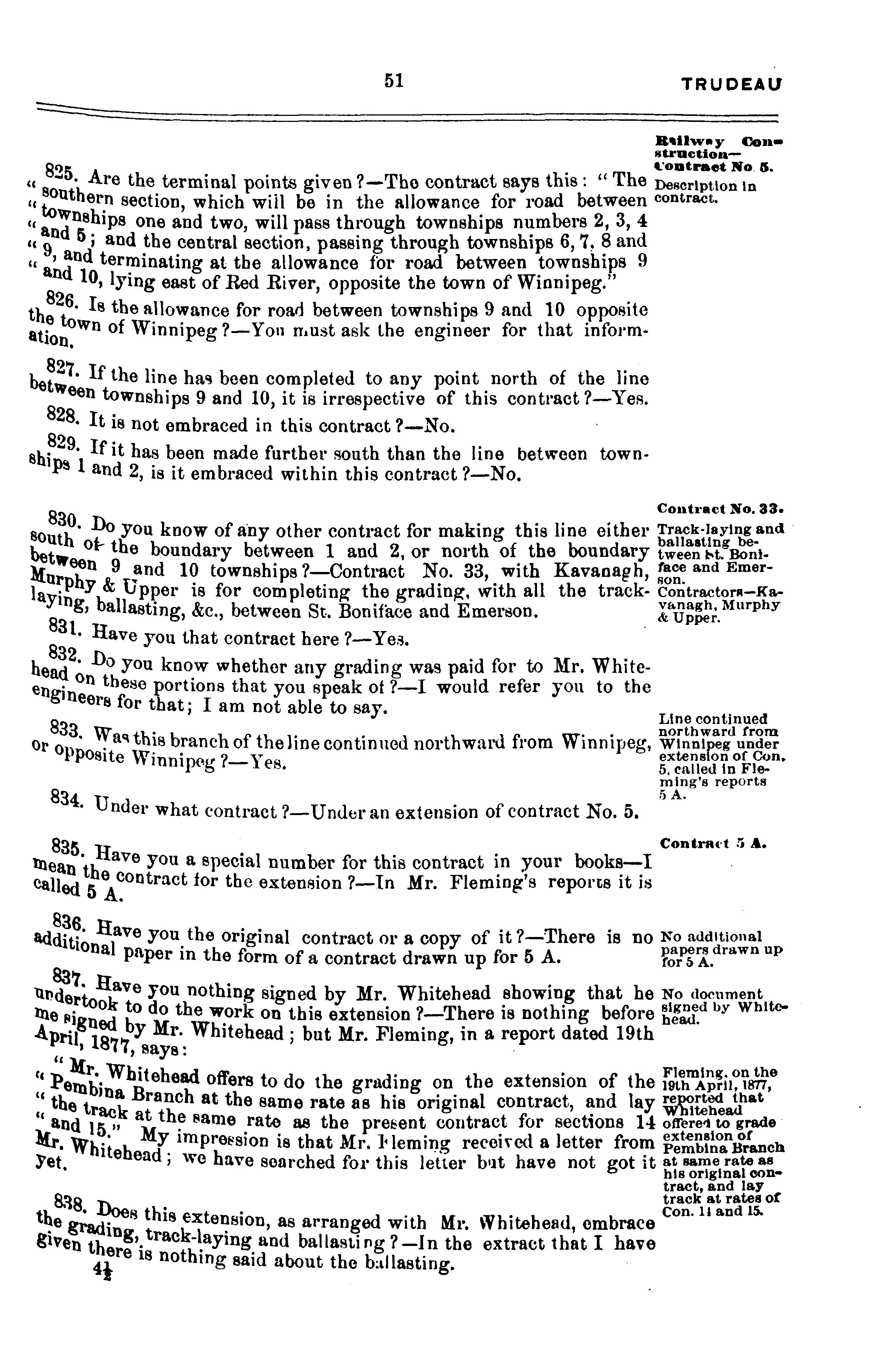 The commission was appointed "to make enquiry into and concerning all facts connected with, and the conduct and prosecution of, the Canadian Pacific Railway from its inception ..."--p. 29. The report has information on surveys, location of the route, and on contracts. The introduction of 25 pages by N. Flood Davin gives a valuable review of events connected with overland communication to the Pacific.