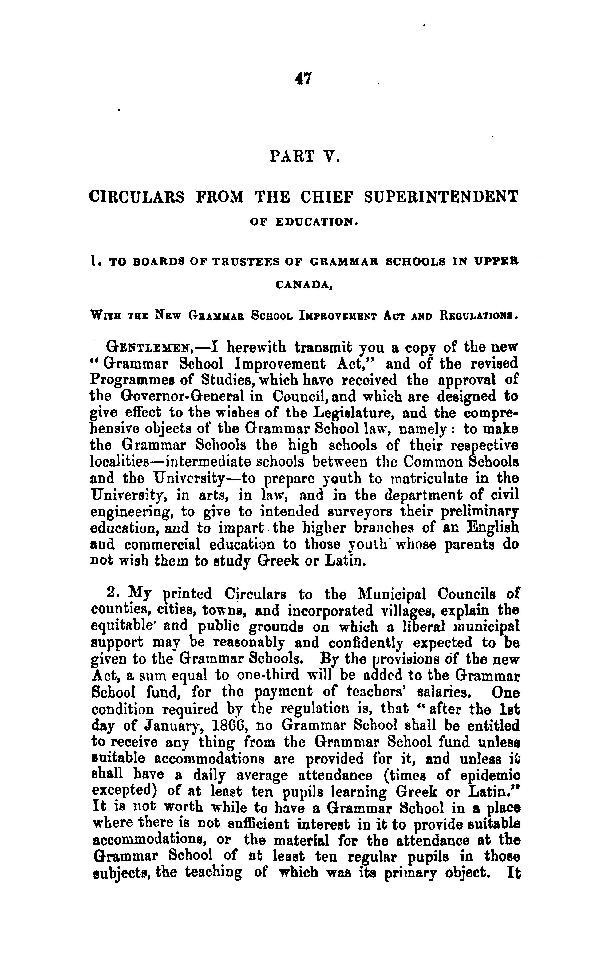 - Grammar school manual : the consolidated acts relating to grammar schools in Upper Canada, together with the revised programme of studies, and the general regulations and instructions for grammar schools, with a copious analytical index