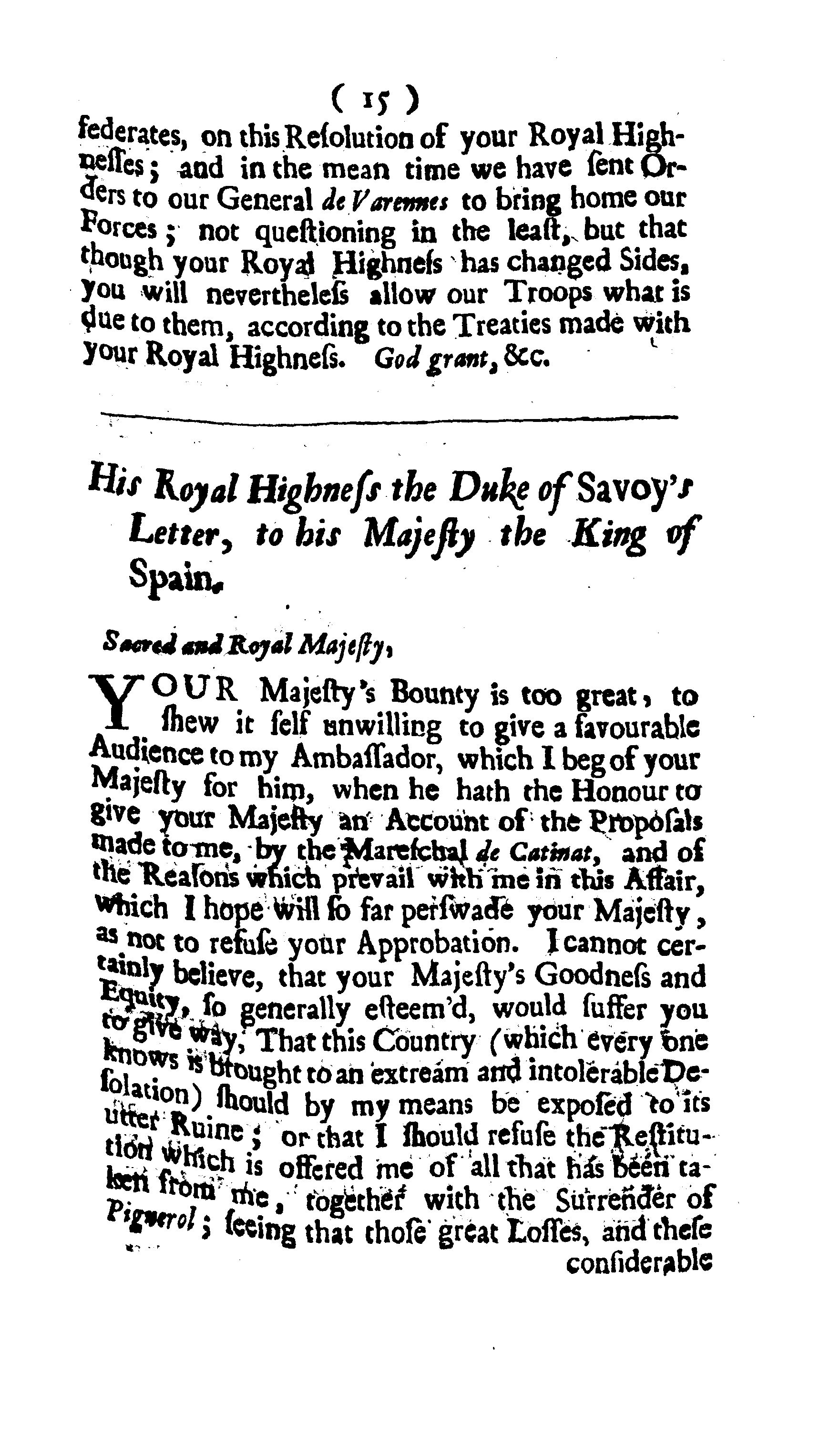 "The acts and negotiations of the treaty of peace held at the palace of Ryswick" (p. [35]-56); "The project of peace between the Emperor & Empire on one part; and His Most Christian Majesty on the other part" (beginning p. [57]), and "The names and qualities of Their Excellencies the ambassadors, plenipotentiaries ... &c. that assembled at the congress of the general peace, at the palace of Ryswick, called Neubourg-House" (pages [125]-142, at end), each have own t.p.