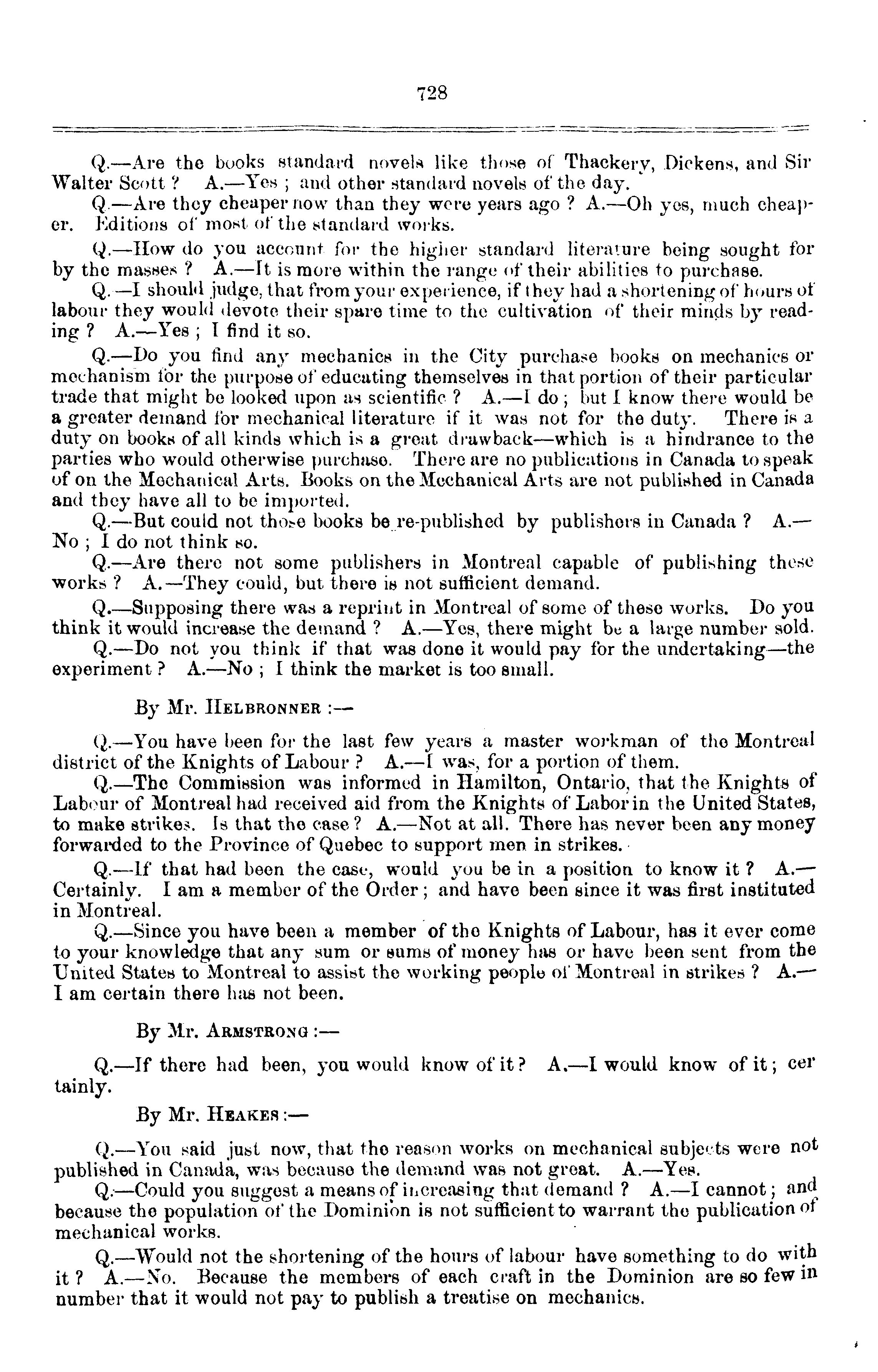 Report of the Royal Commission on the Relations of Labor and Capital in Canada : evidence, Quebec, part I.