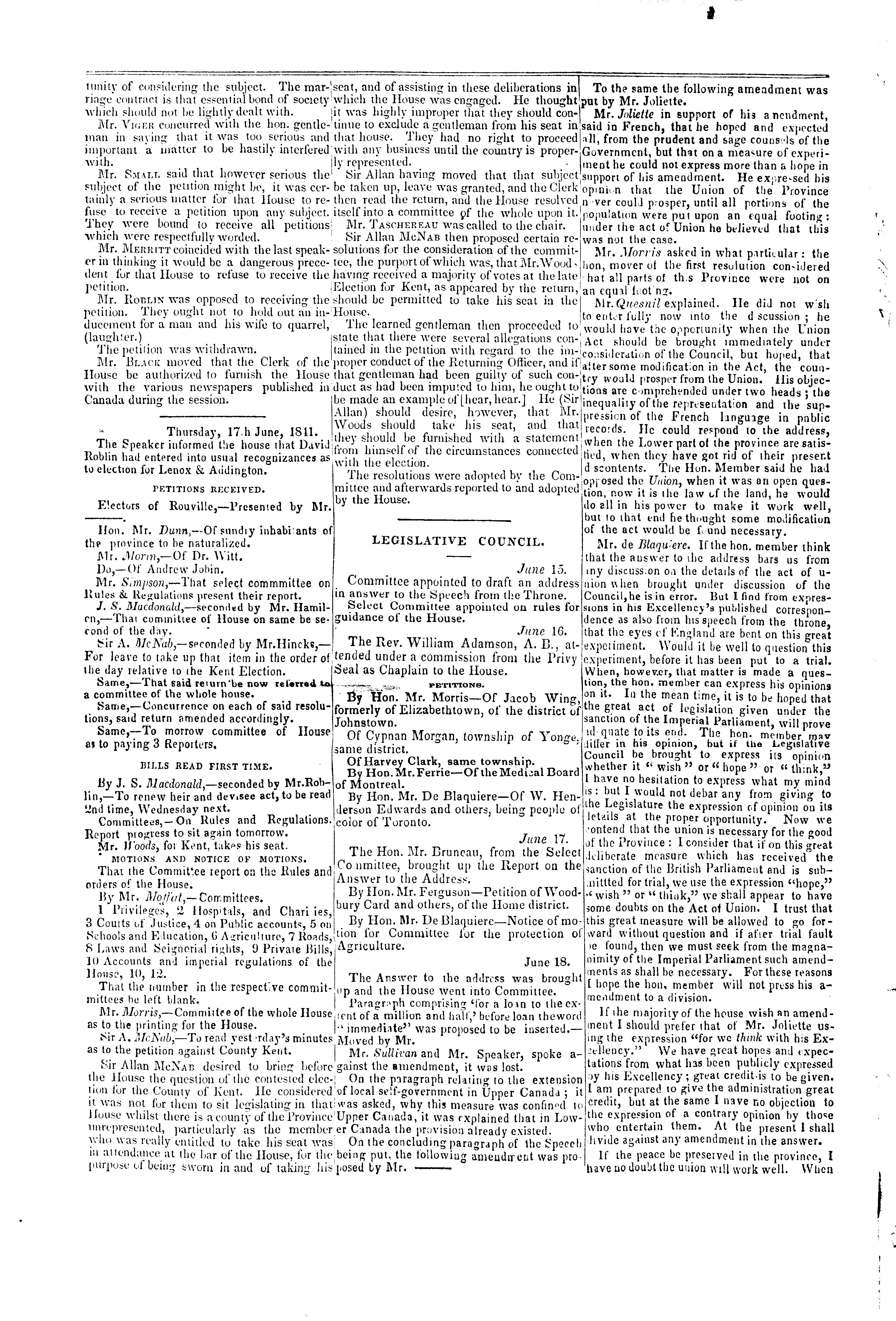 Kingston [Ont.] : Chronicle and Gazette Office, [1841]; 105 images avec recherche en texte intégral