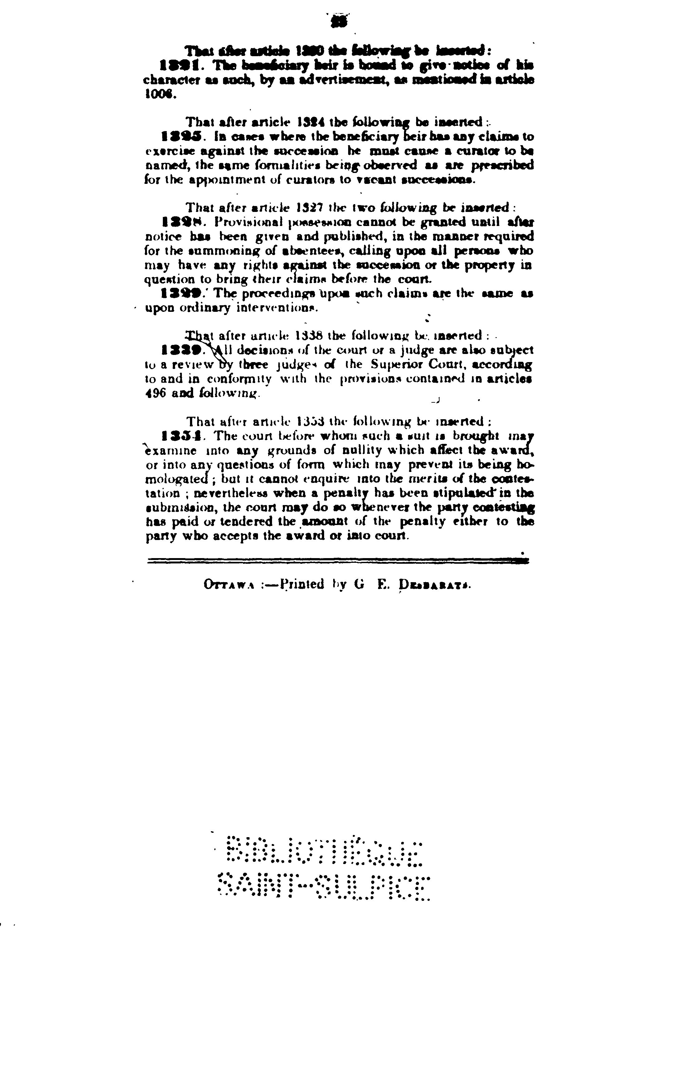 Titre de départ en anglais: Schedule : resolutions containing the amendments to be made in the printed roll of the Code of civil procedure of Lower Canada.