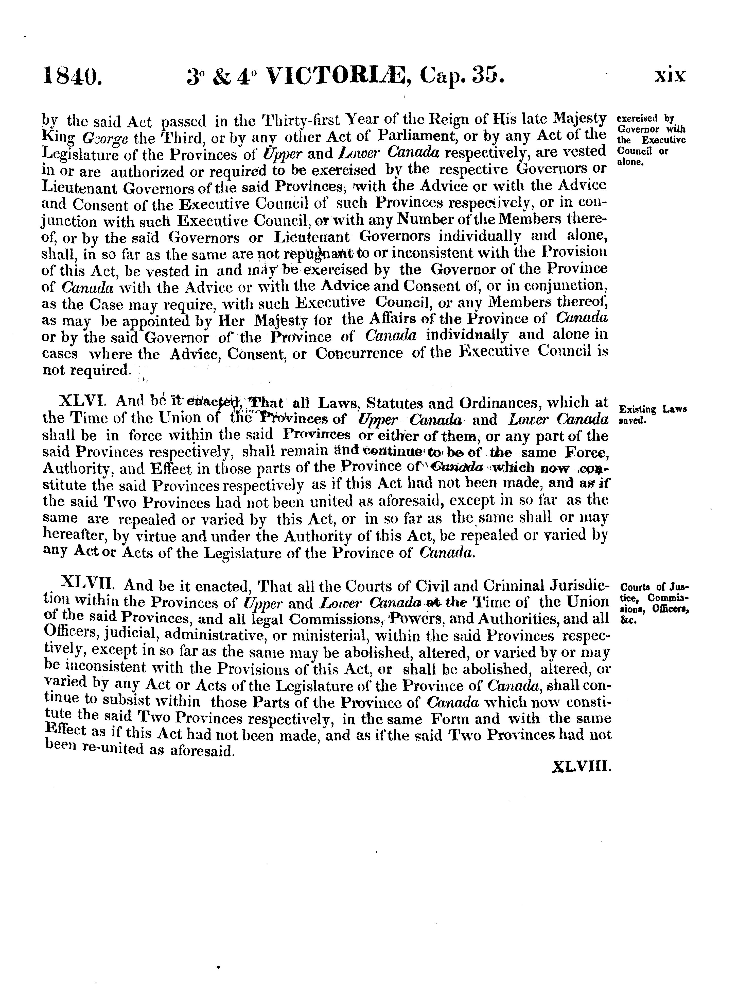 Caption title: Act to re-unite the provinces of Upper and Lower Canada, and for the government of Canada.