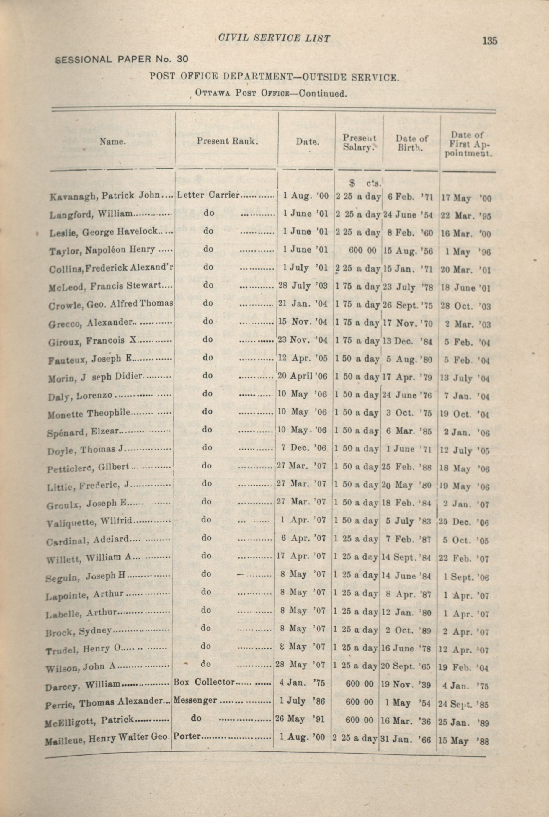 The civil service list of Canada, 1907 : containing the names of all persons employed in the several departments of the civil service, together with those employed in the two Houses of Parliament, on the 1st April, 1907 ... to which are added 'The Civil Service Act' ... 'The Civil Service Superannuation and Retirement Act' ... and 'The Civil Service Insurance Act' ...