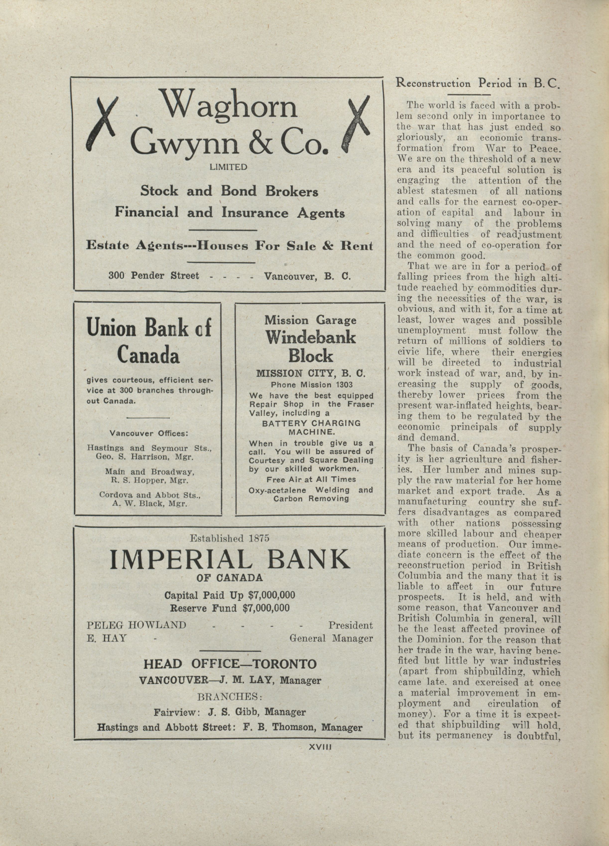 Reconstruction, 1914-1939 -- Colombie-Britannique.