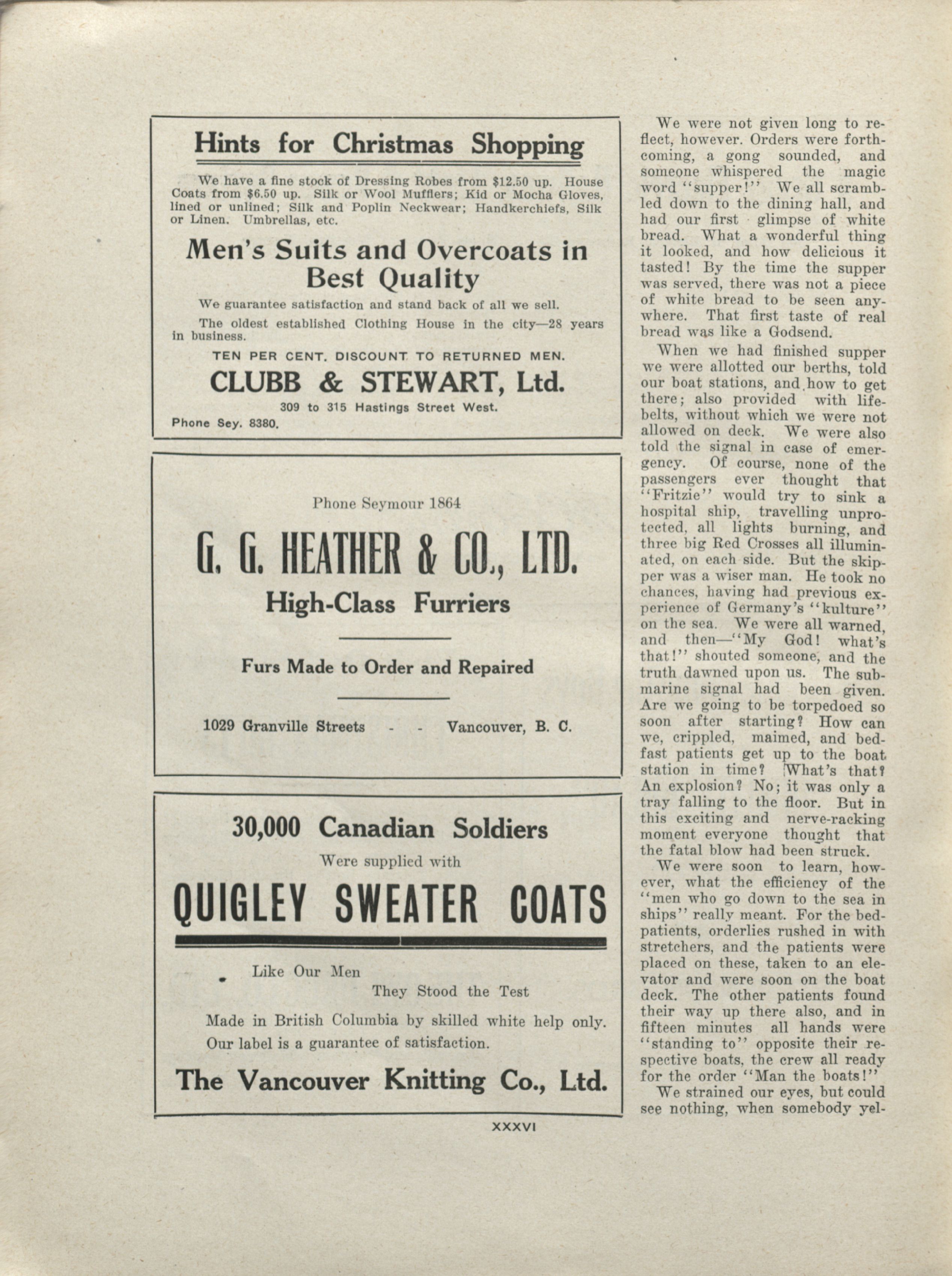 "The Net Profits of this Publication will go to the Amputation Club of B.C., Vancouver for men who have been maimed and wounded in the Great War."