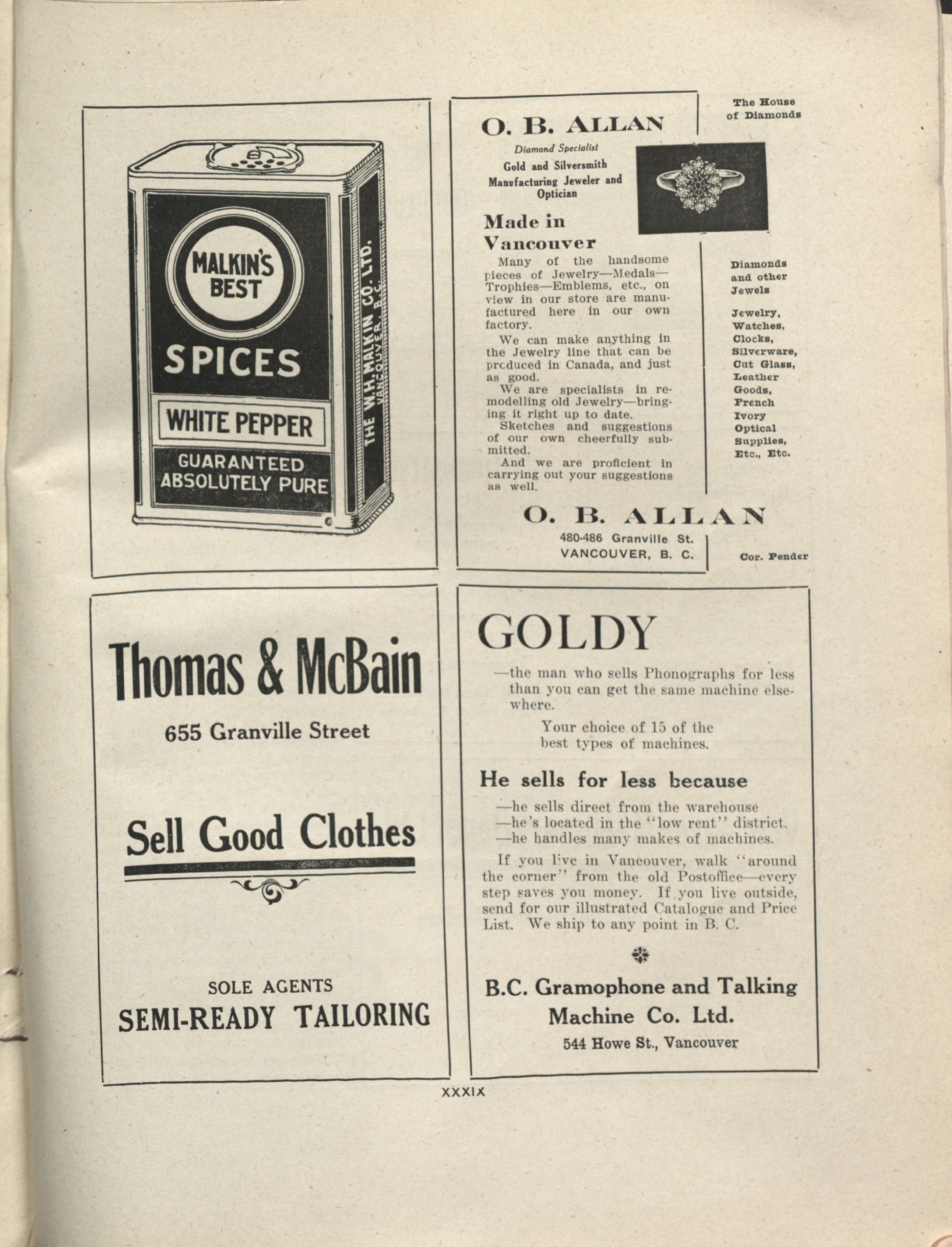 "The Net Profits of this Publication will go to the Amputation Club of B.C., Vancouver for men who have been maimed and wounded in the Great War."