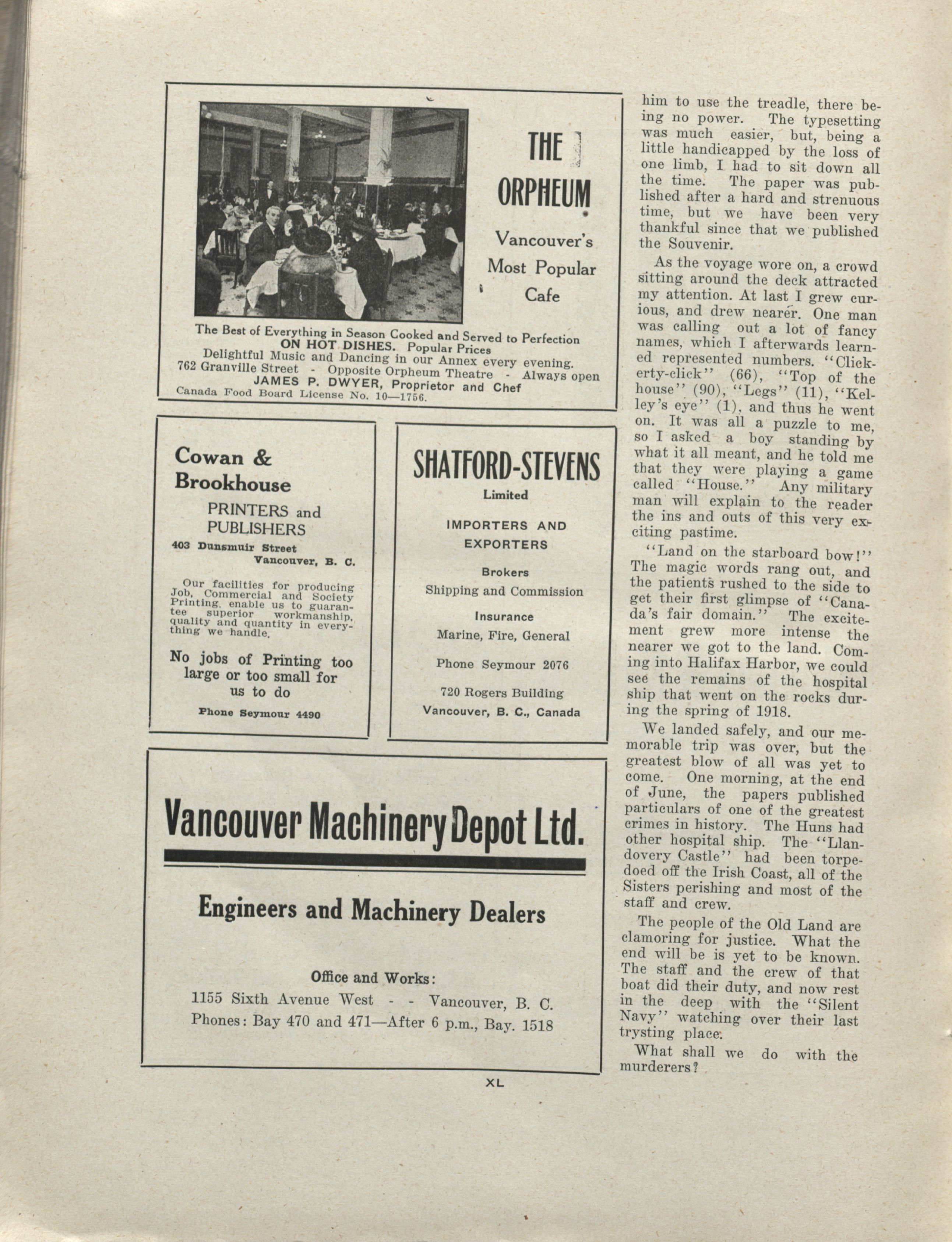 Aide Vancouver : Pub. for the Amputation Club of B.C., [1918]; 233 images, 231 avec recherche en texte intégral