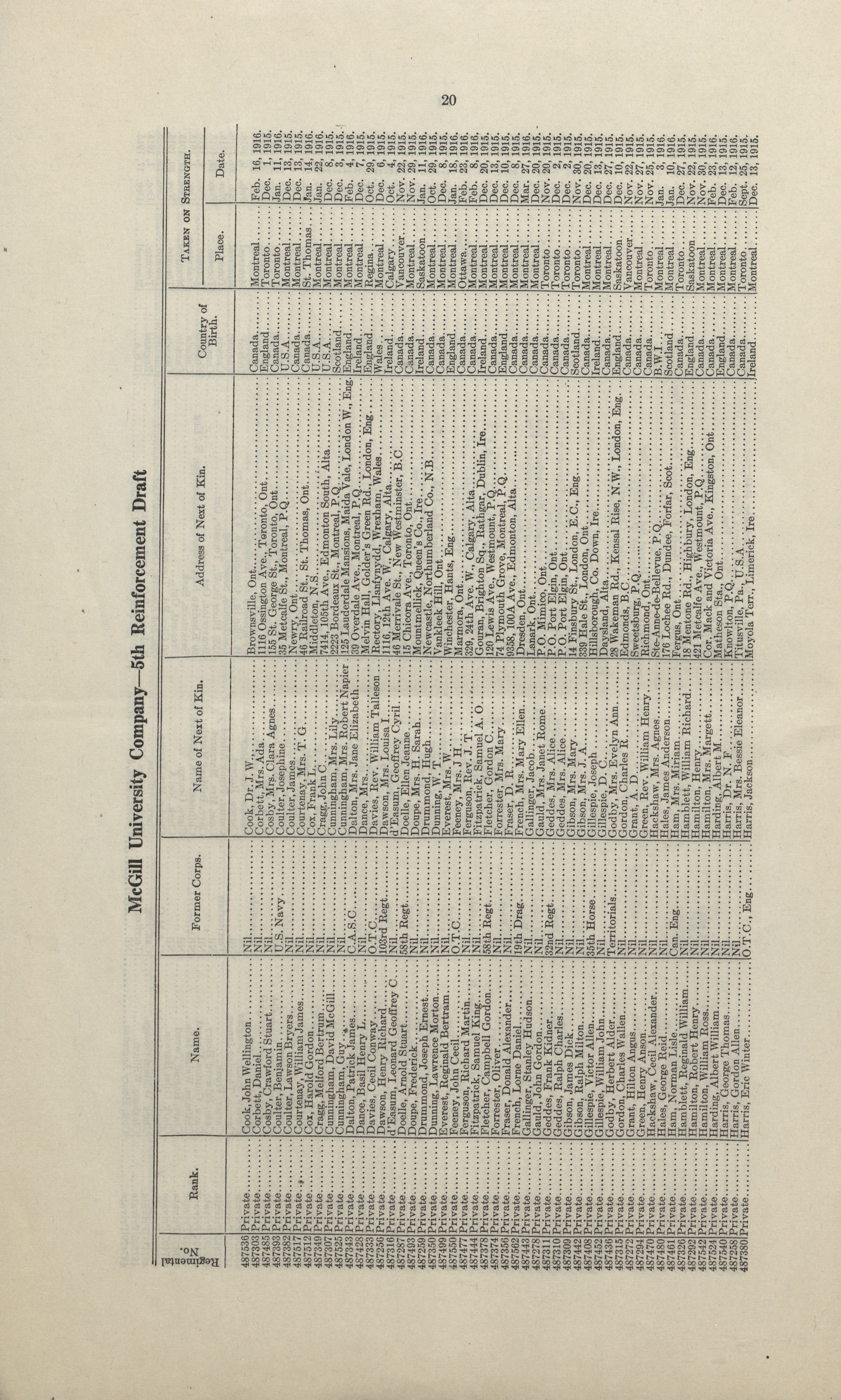 2nd, 3rd, 4th, and 5th University Companies, P.P.C.L.I. Reinforcements : nominal roll of officers, non-commissioned officers and men