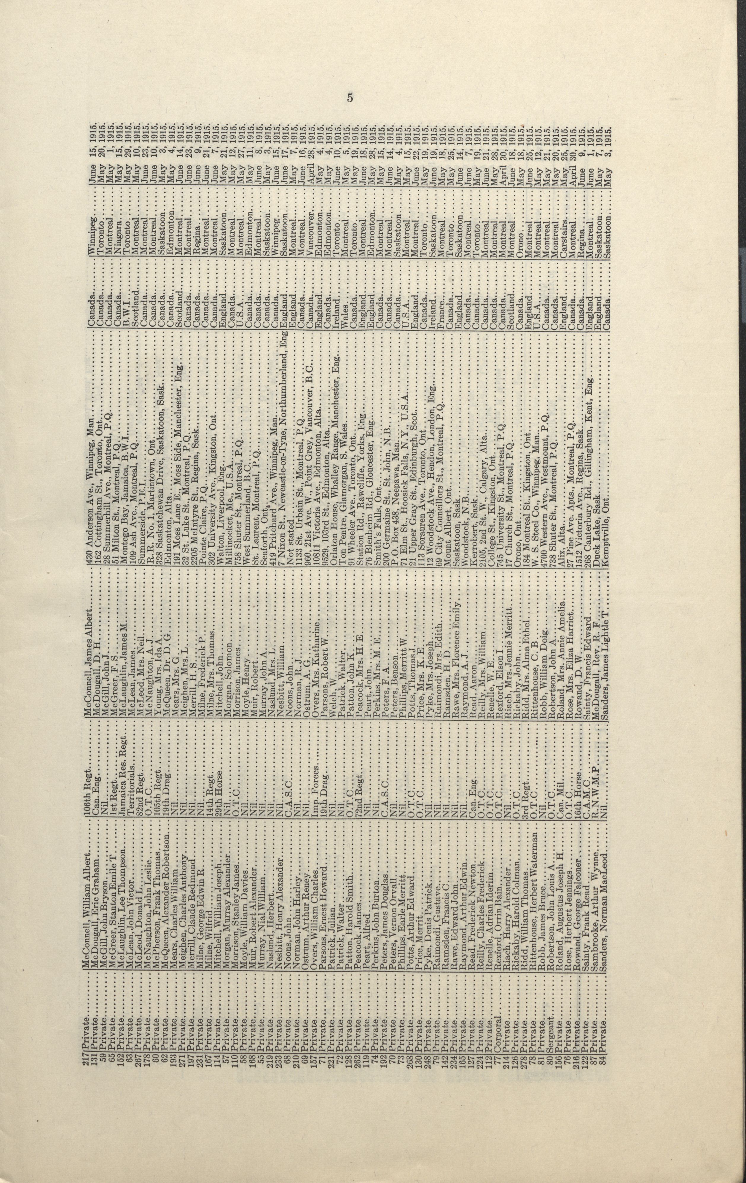 2nd, 3rd, 4th, and 5th University Companies, P.P.C.L.I. Reinforcements : nominal roll of officers, non-commissioned officers and men