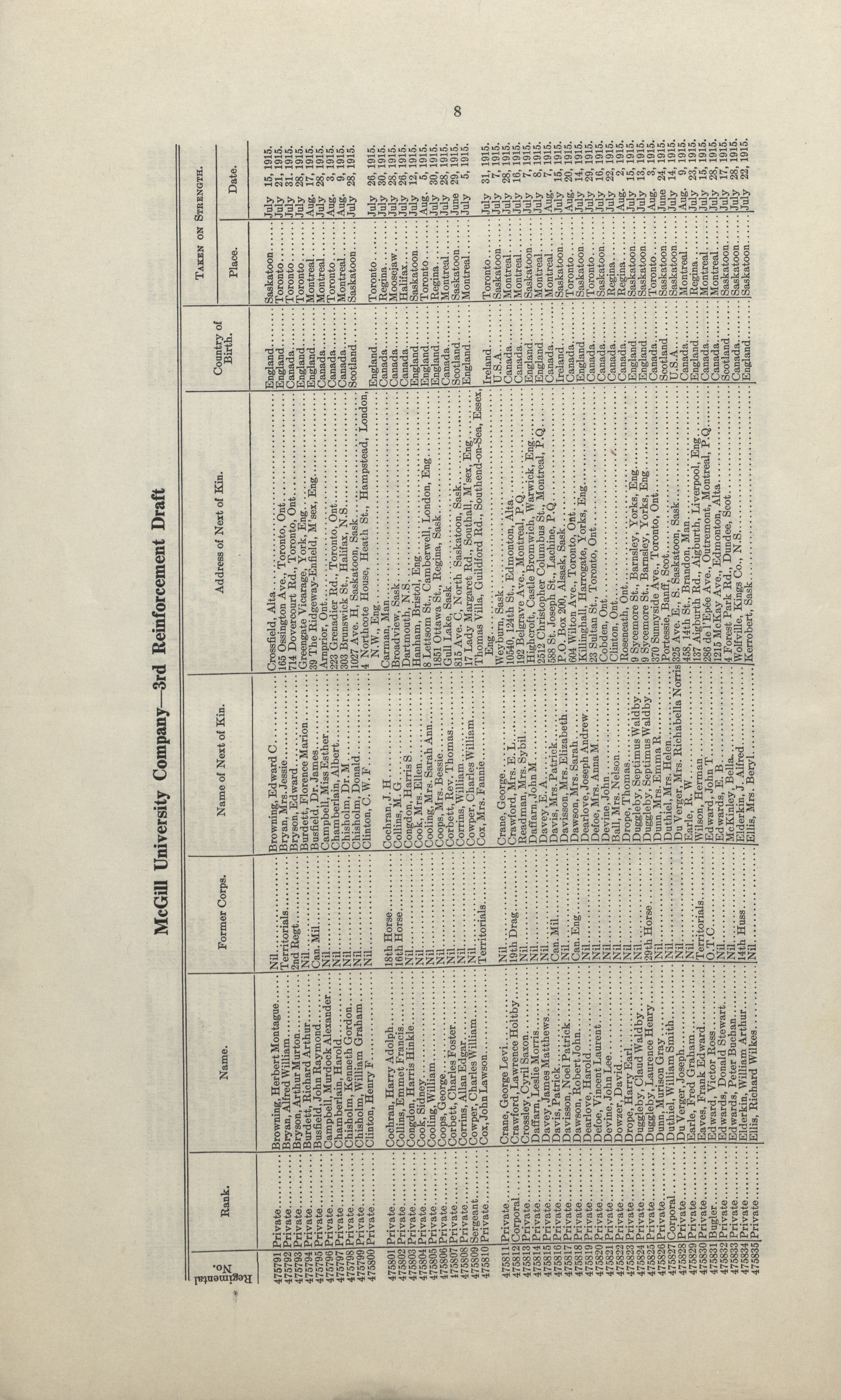 2nd, 3rd, 4th, and 5th University Companies, P.P.C.L.I. Reinforcements : nominal roll of officers, non-commissioned officers and men