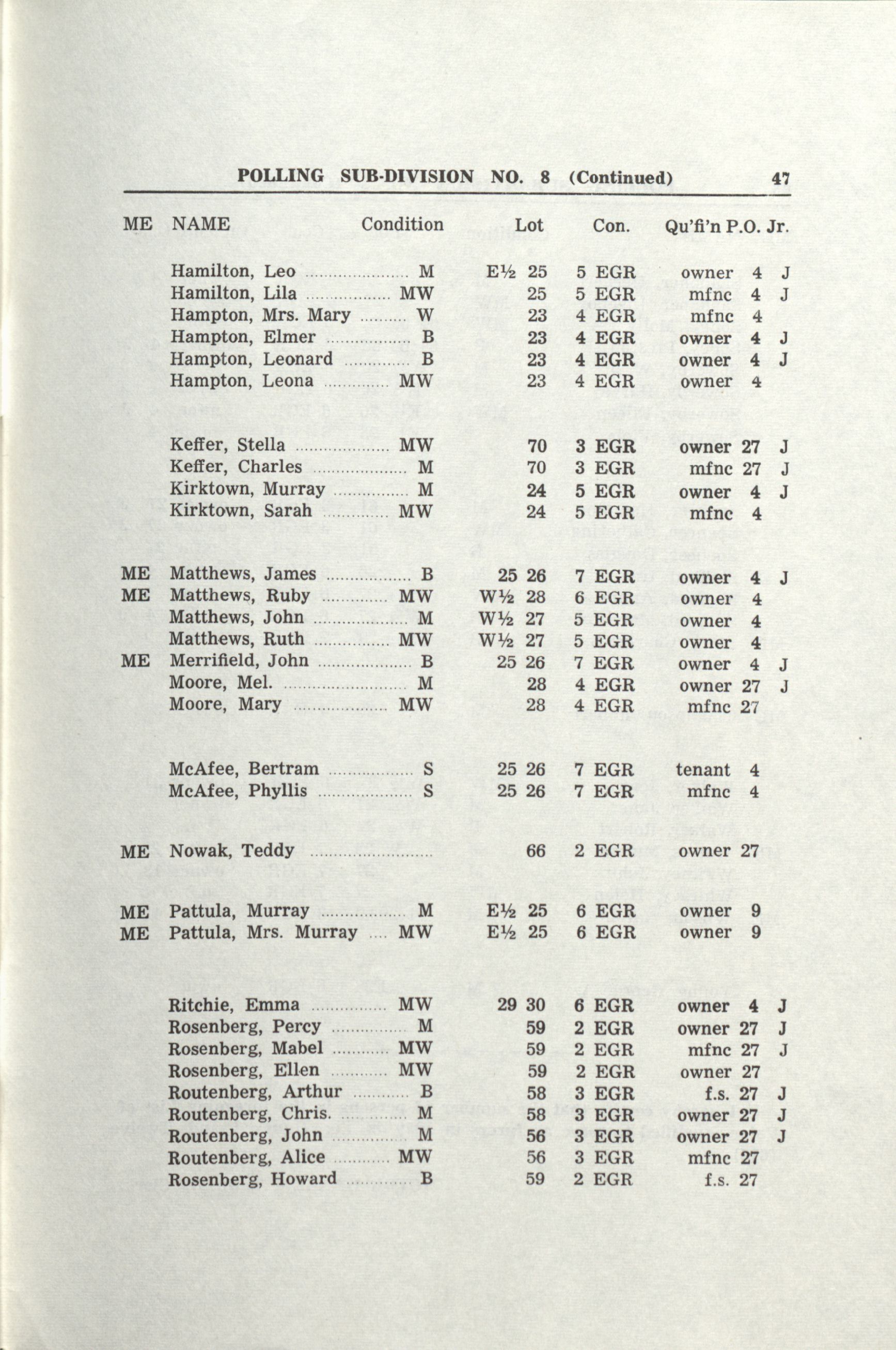 Voters' list of the township of Holland for the year 1958