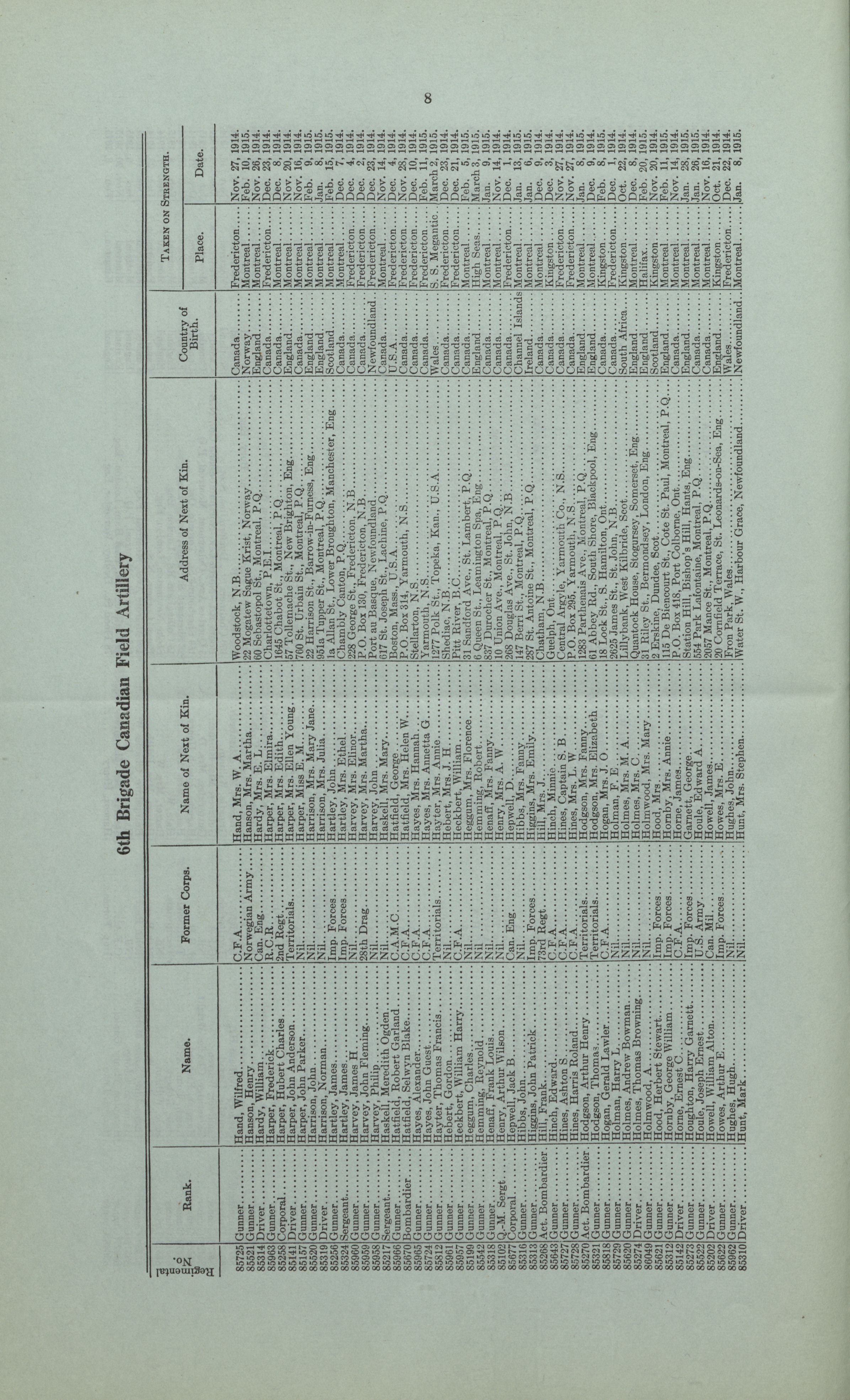 6th Canadian Field Artillery Brigade : nominal roll of officers, non-commissioned officers and men
