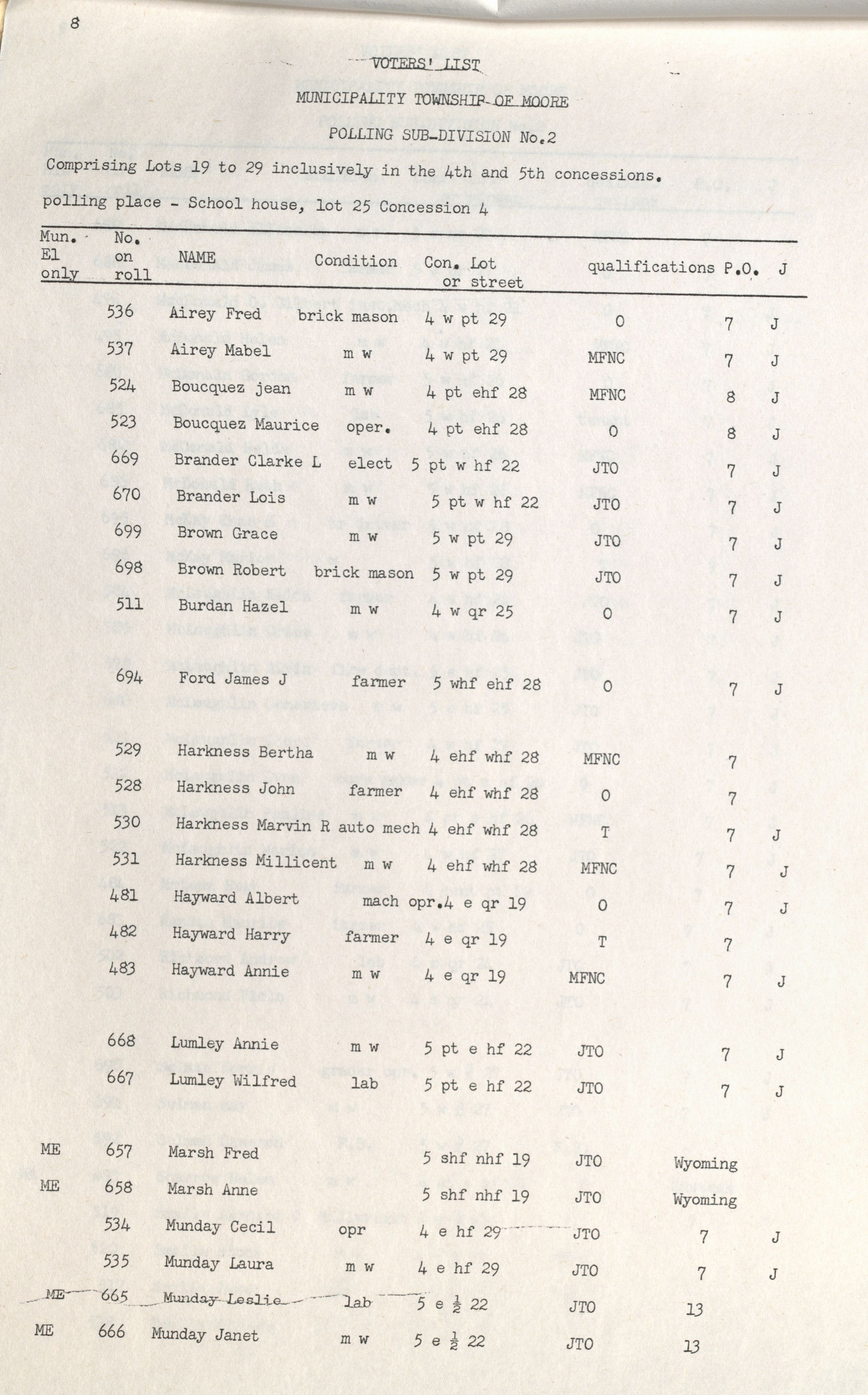 - Voters' list, municipality of th[e] township of Moore, for the year 1959
