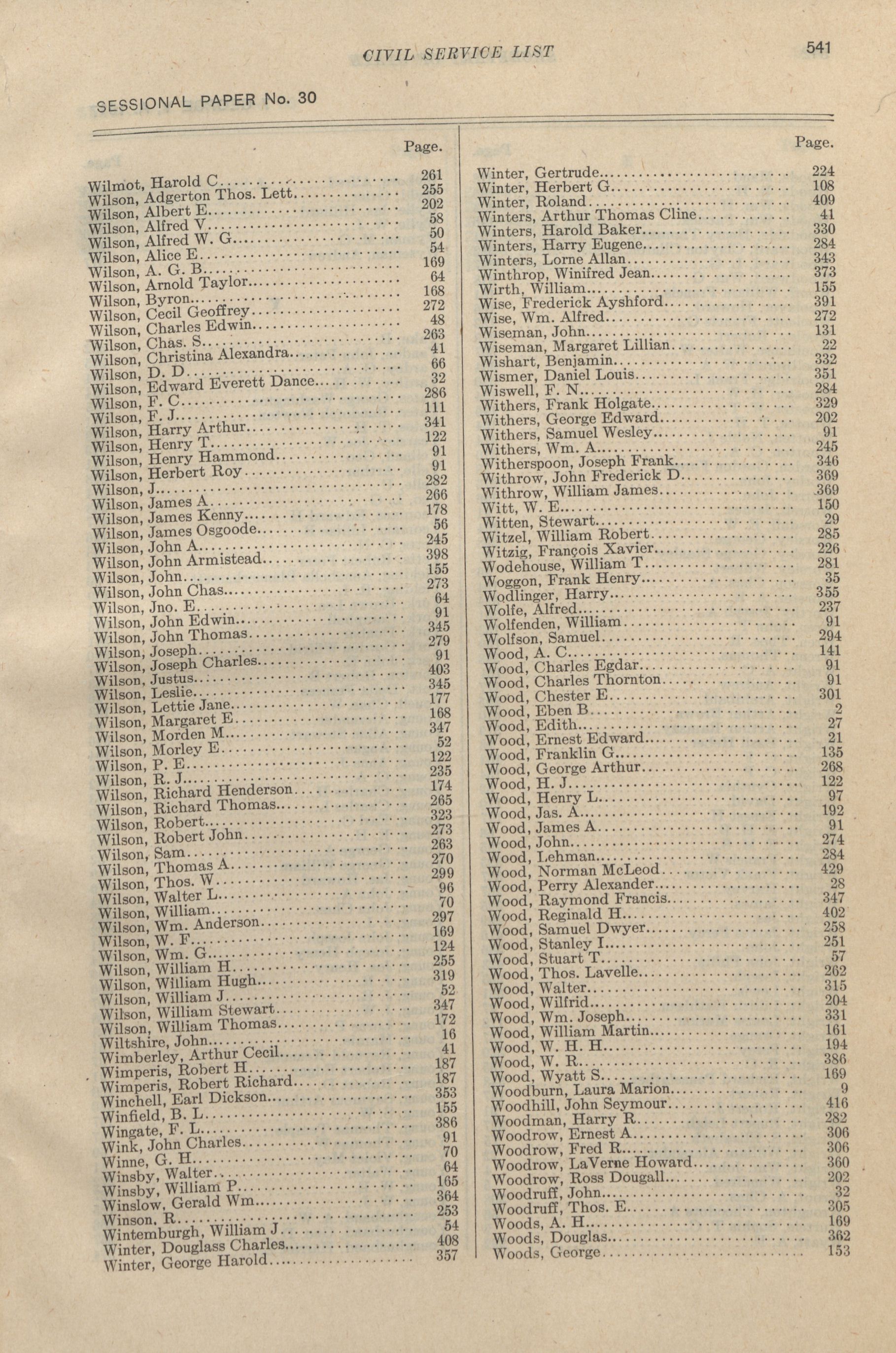 Civil service list, 1916 = Liste du service civile.