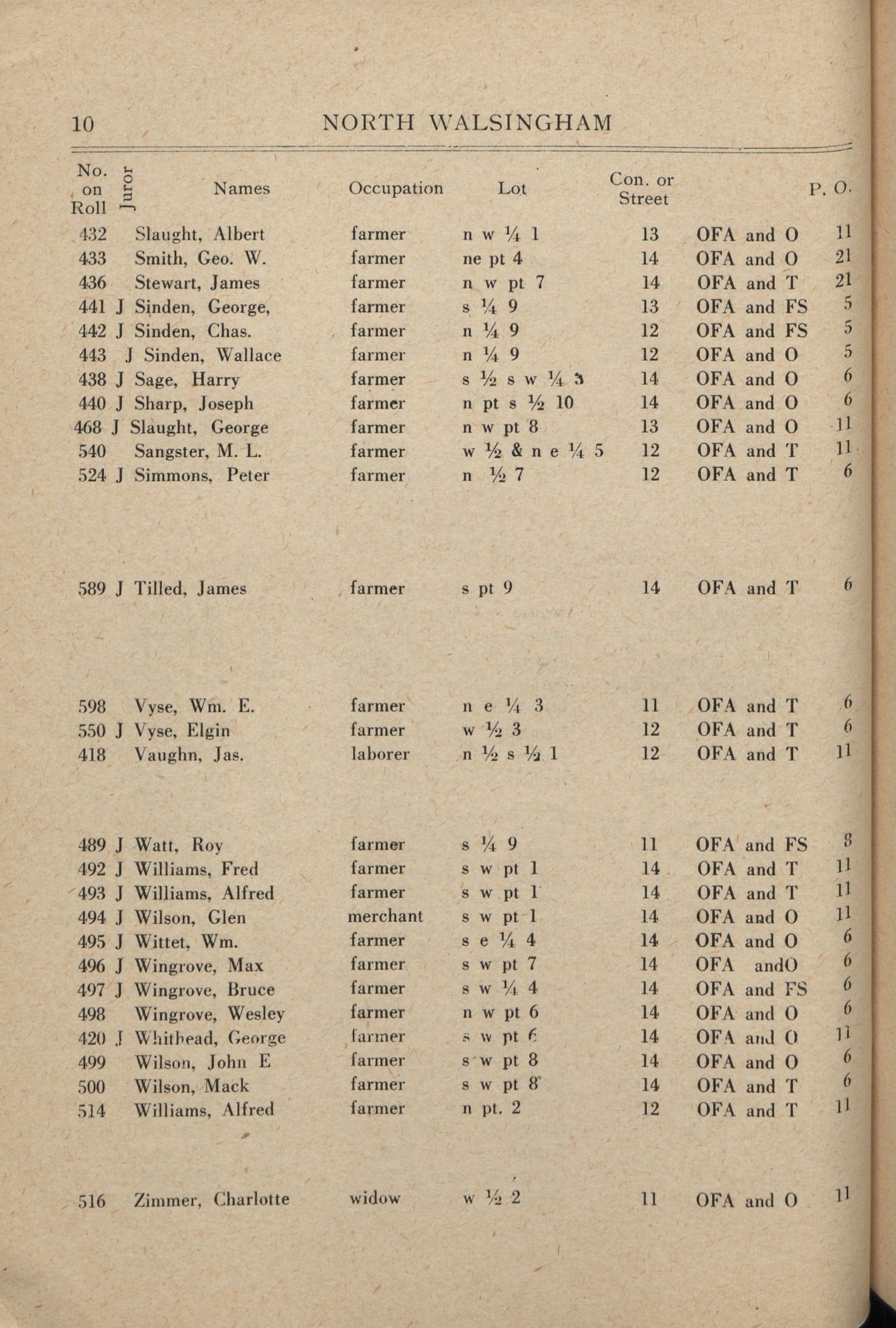 Caption title: List of voters for the year 1919 of the township of North Walsingham.