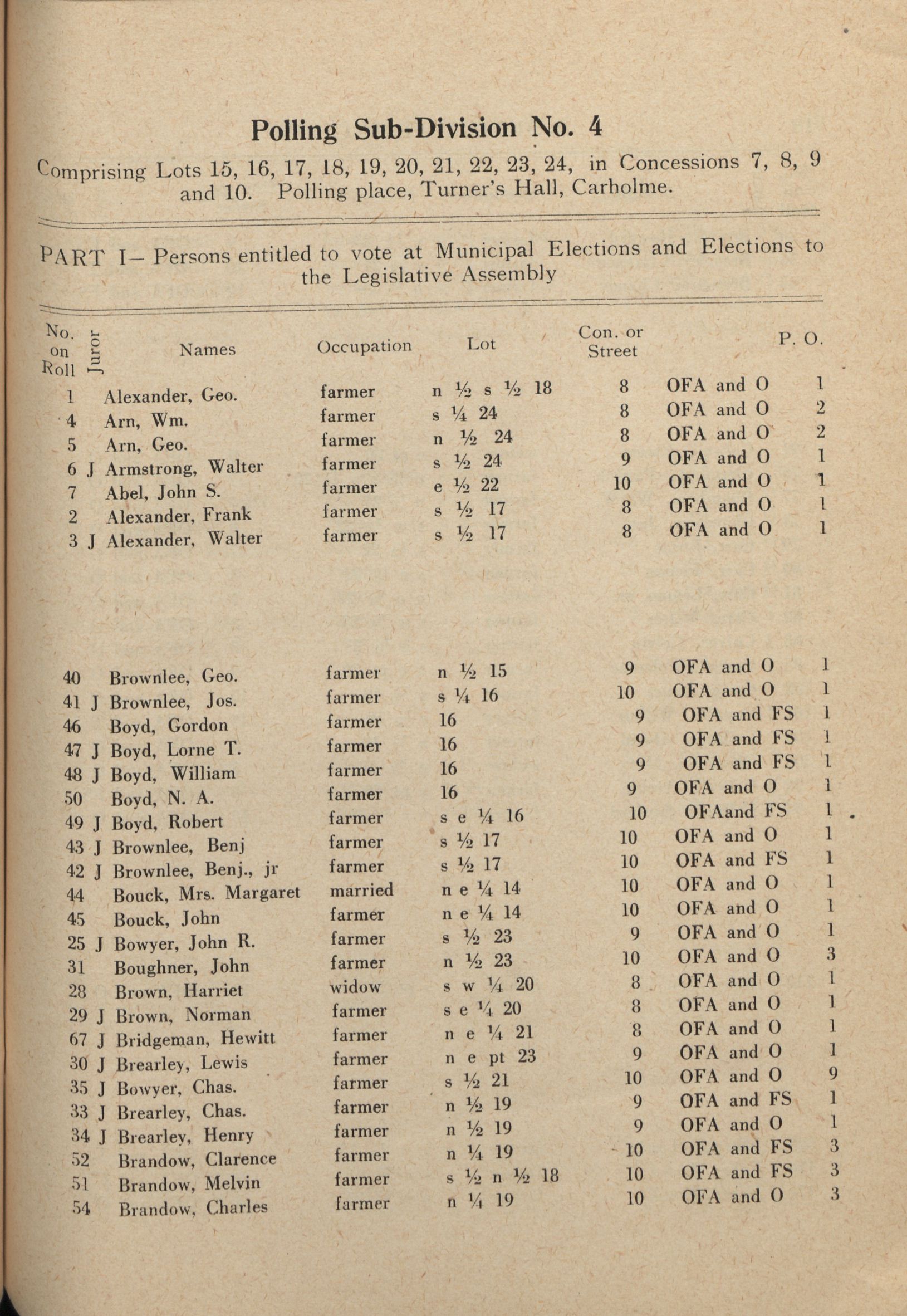 Caption title: List of voters for the year 1919 of the township of North Walsingham.