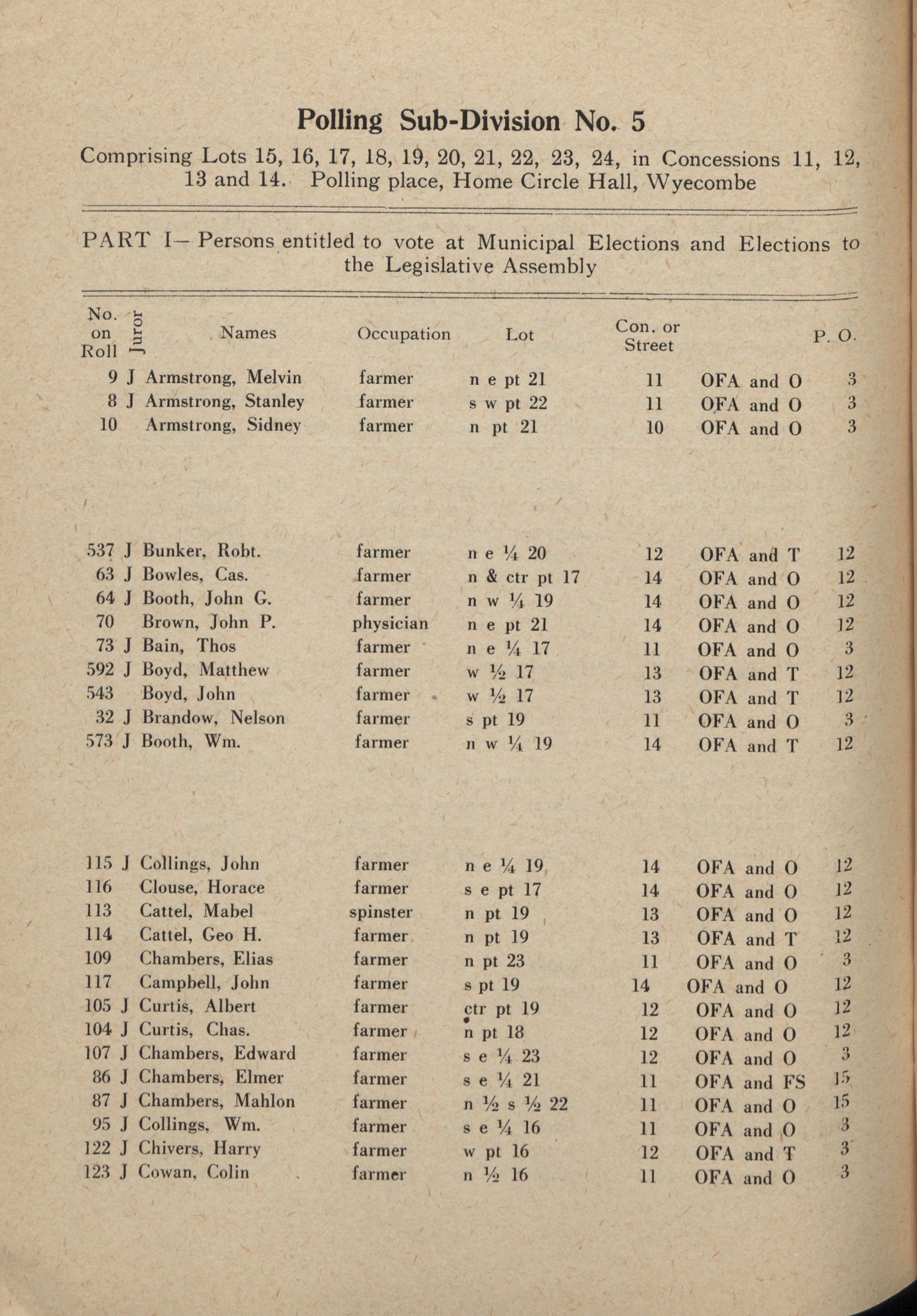 List of voters for the municipality of North Walsingham for the year 1919 - Adresse bibliographique