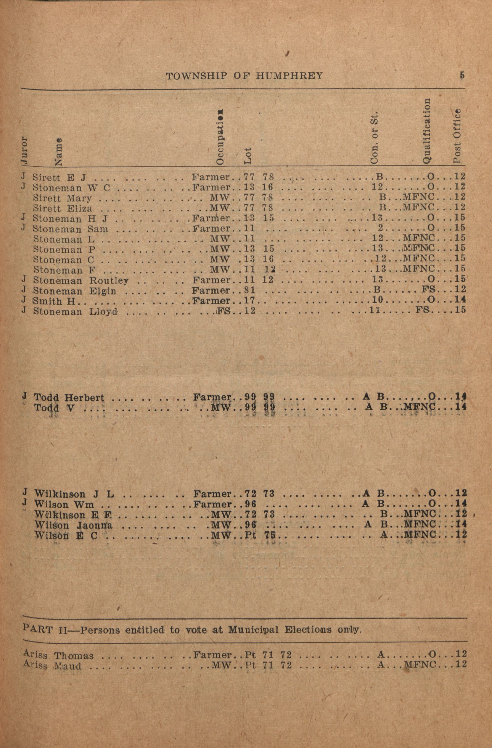 - List of voters for the municipality of the township of Humphrey for the year 1930 : parts 1, 2 and 3.