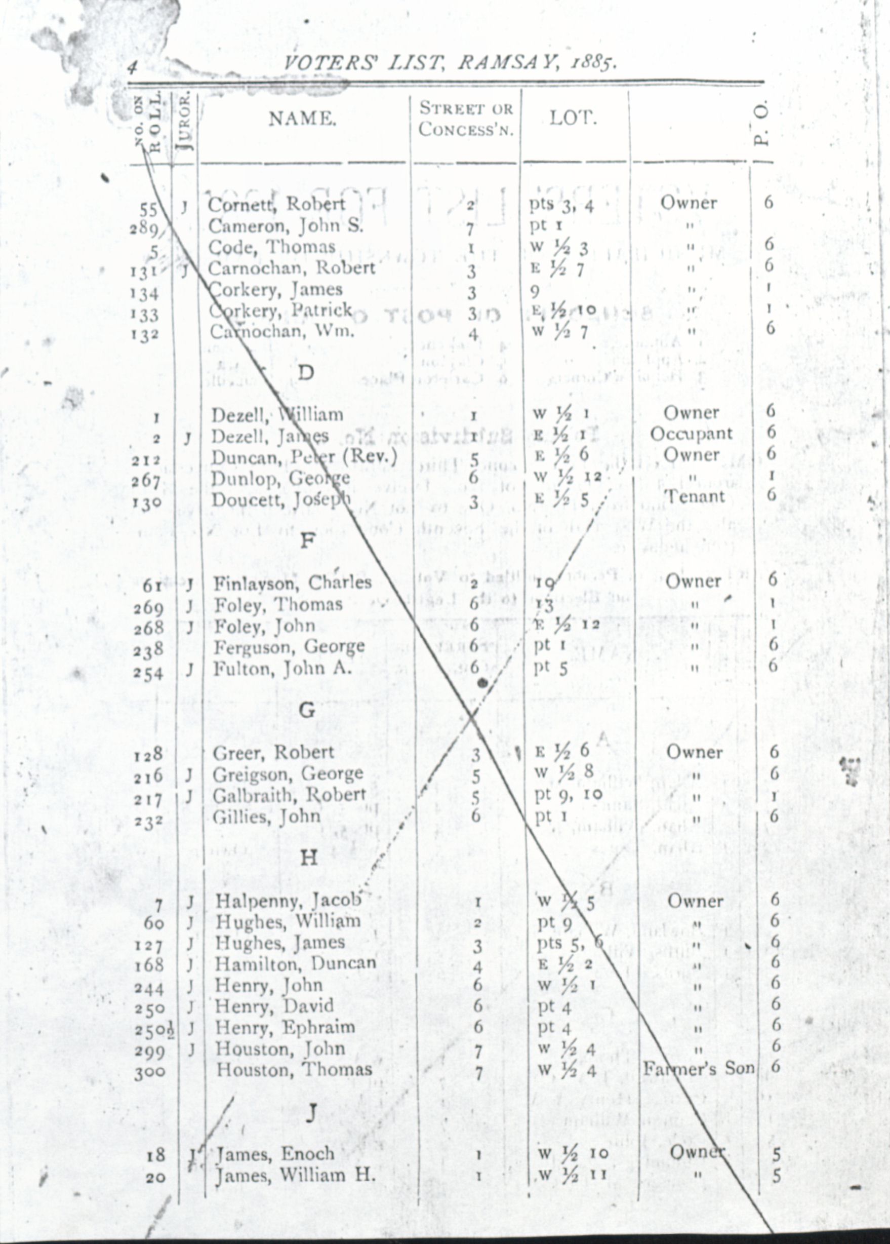 Voters' list for the municipality of the township of Ramsay for the year 1885