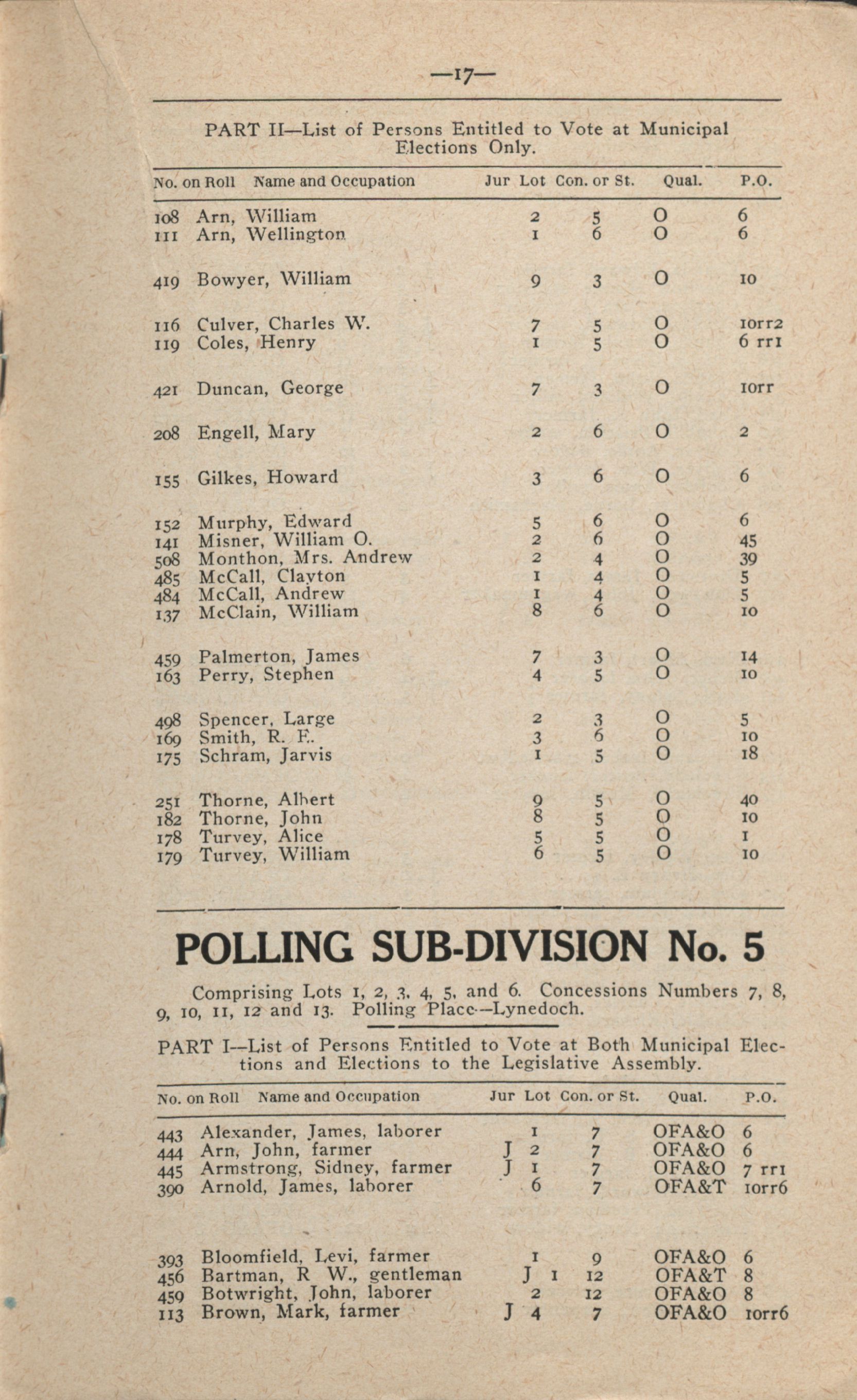 Caption title: Voters' list for the township of Charlotteville for the year 1919.