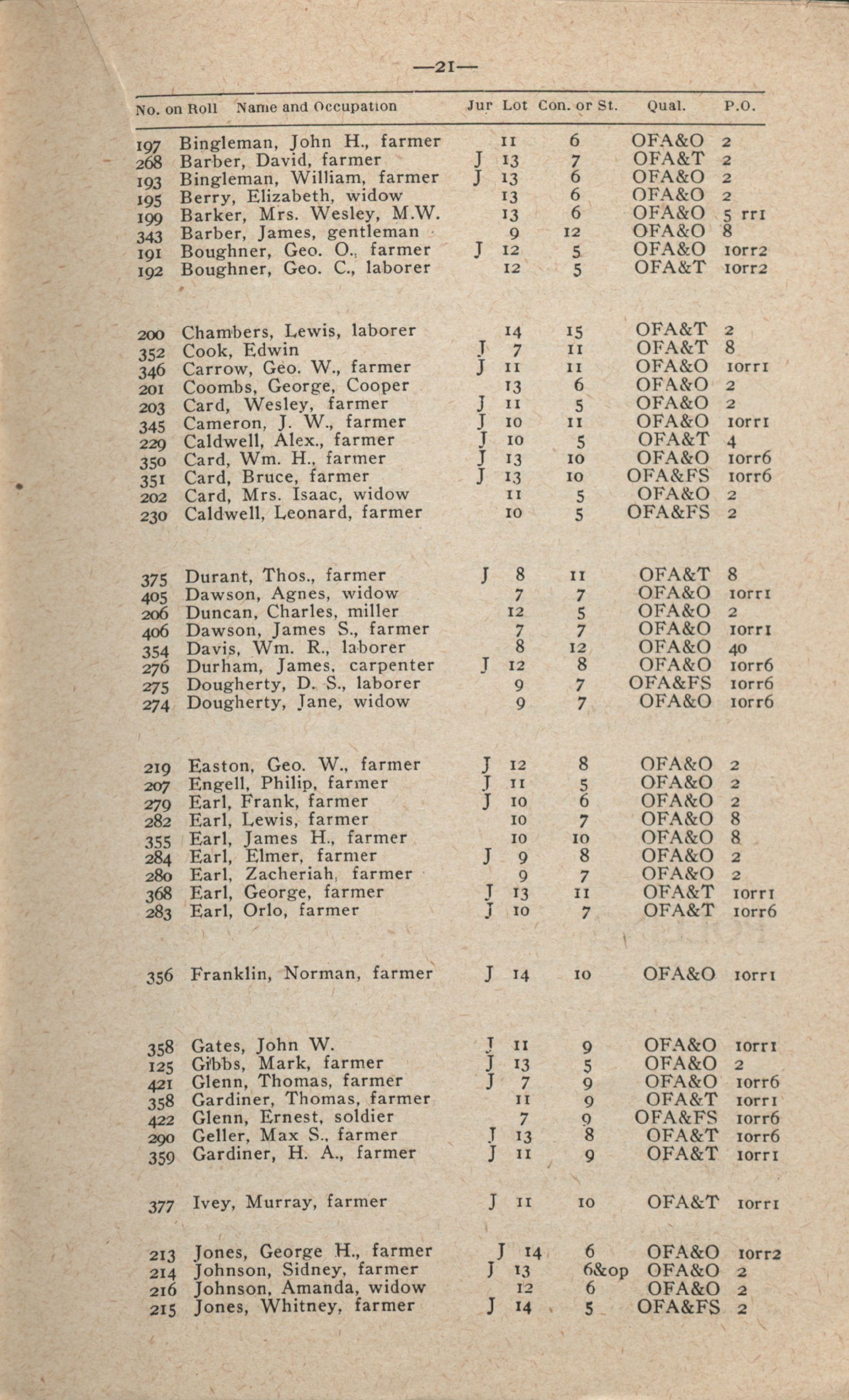 "List First Posted 2nd day of Aug. 1919. Last Day for Appeals 2nd day of Sept."