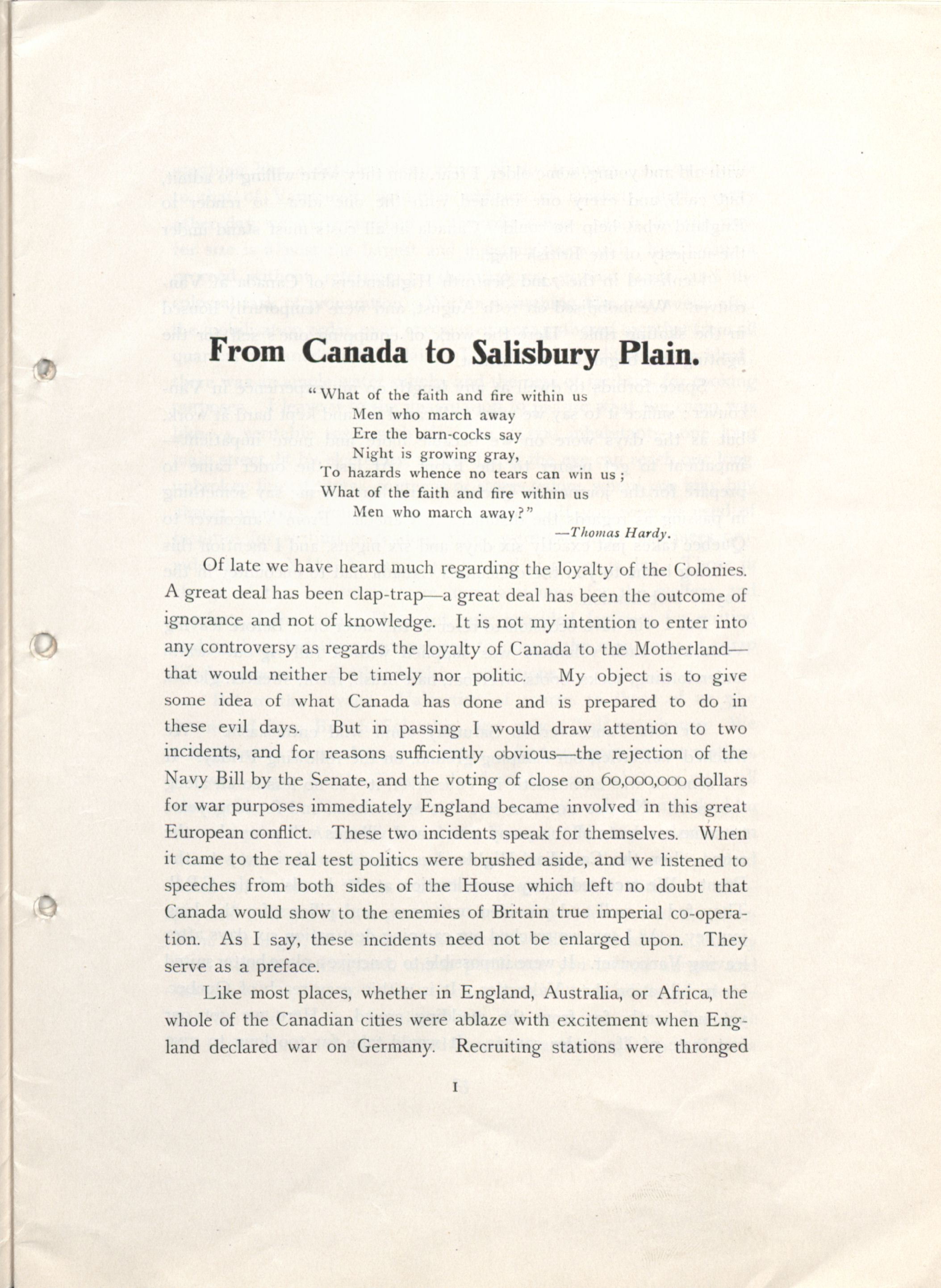Guerre mondiale, 1914-1918 -- Histoire des unités -- Canada. - Document original