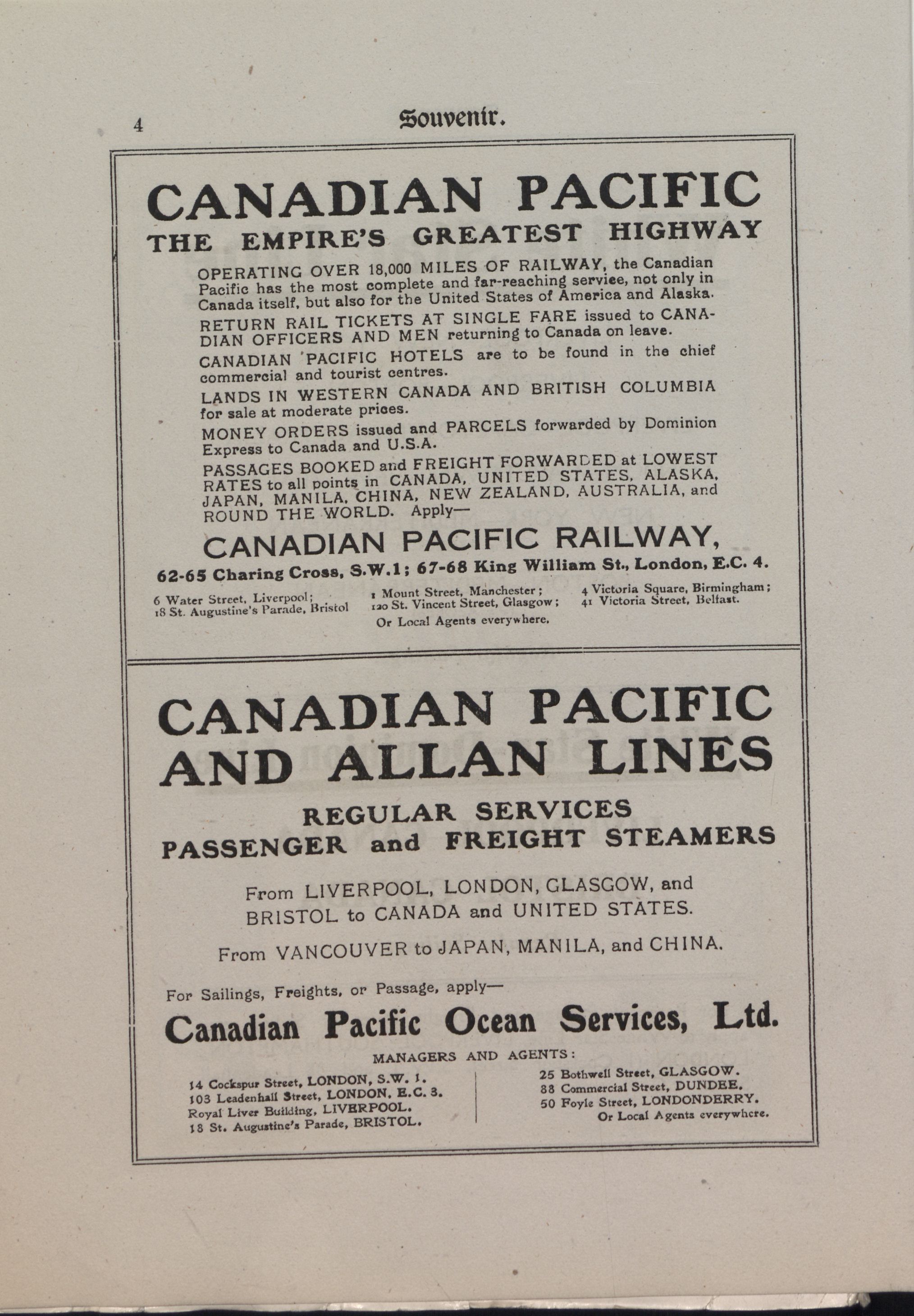 Canada. Armée canadienne. Canadian Discharge Depot.