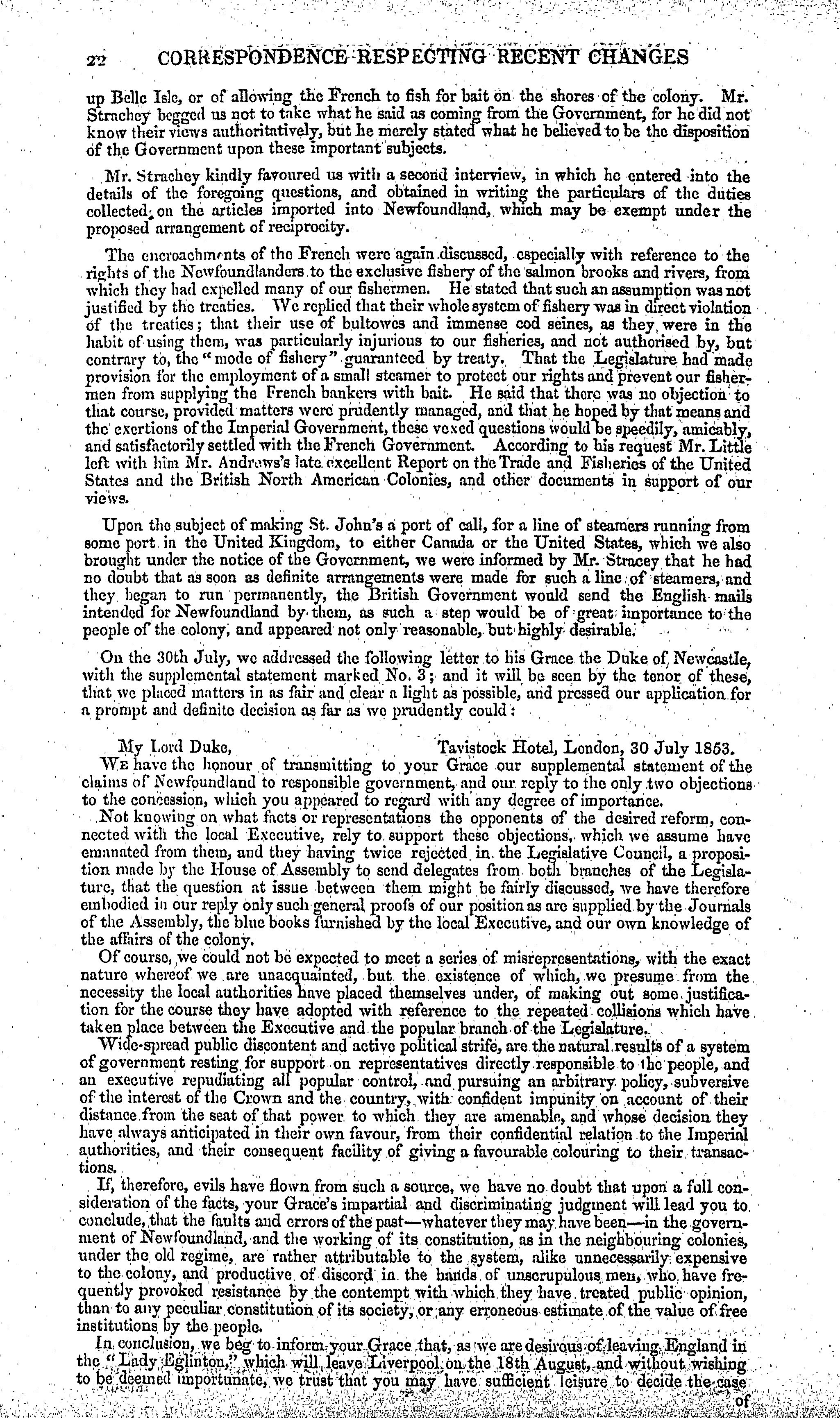 Running title: Correspondence respecting recent changes in the constitution of Newfoundland.