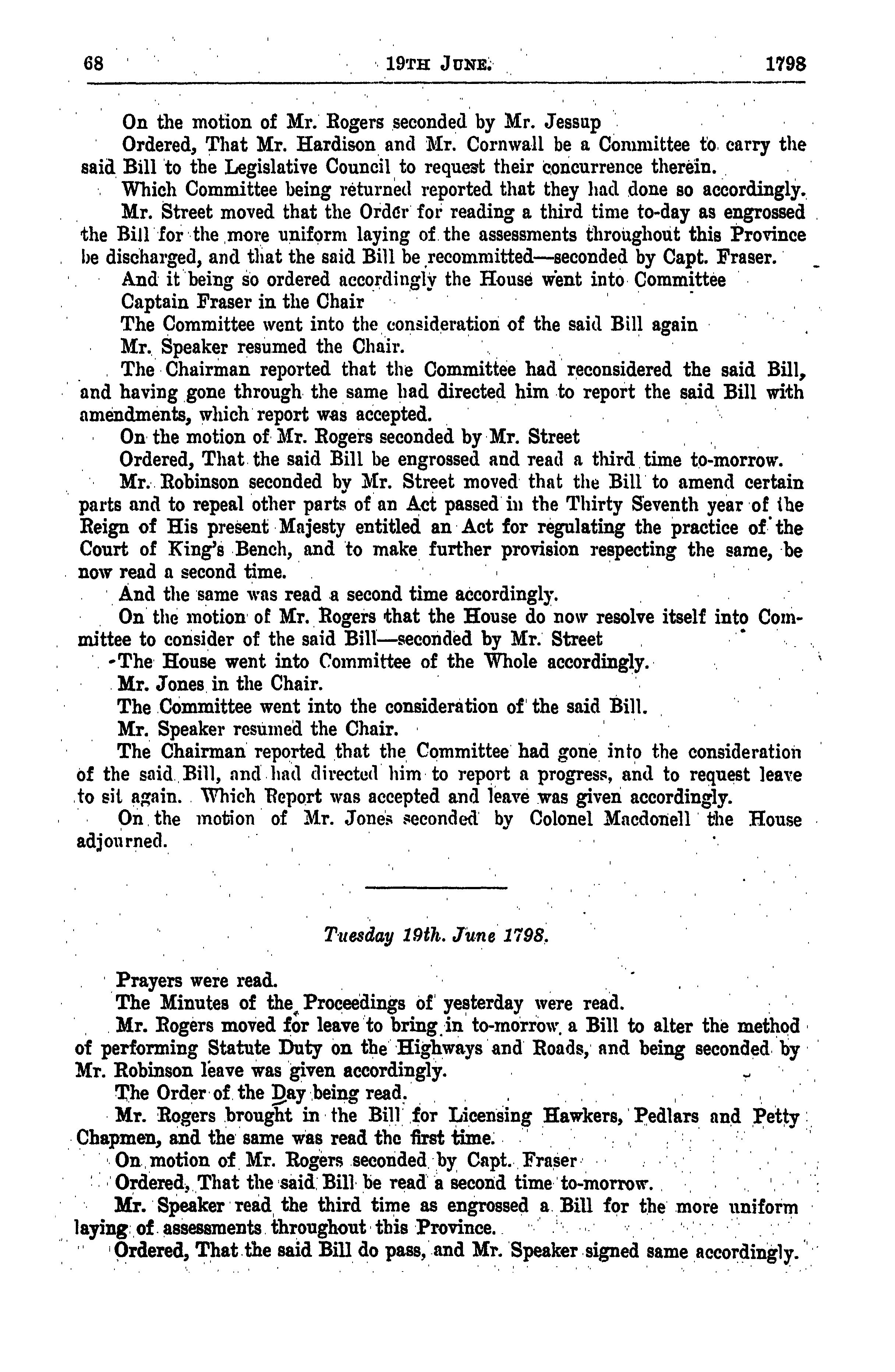 The Journals of the Legislative Assembly of Upper Canada for the years 1792, 1793, 1794 (partly), 1798, 1799, 1800, 1801, 1802, 1803, 1804