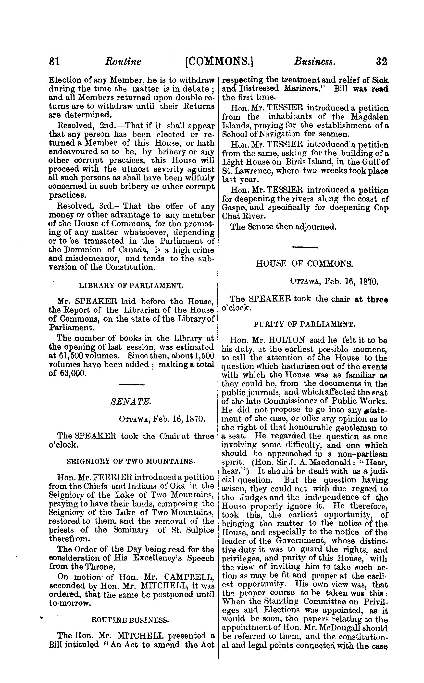 Parliamentary debates, Dominion of Canada, third session, 33 Victoriae, 1870