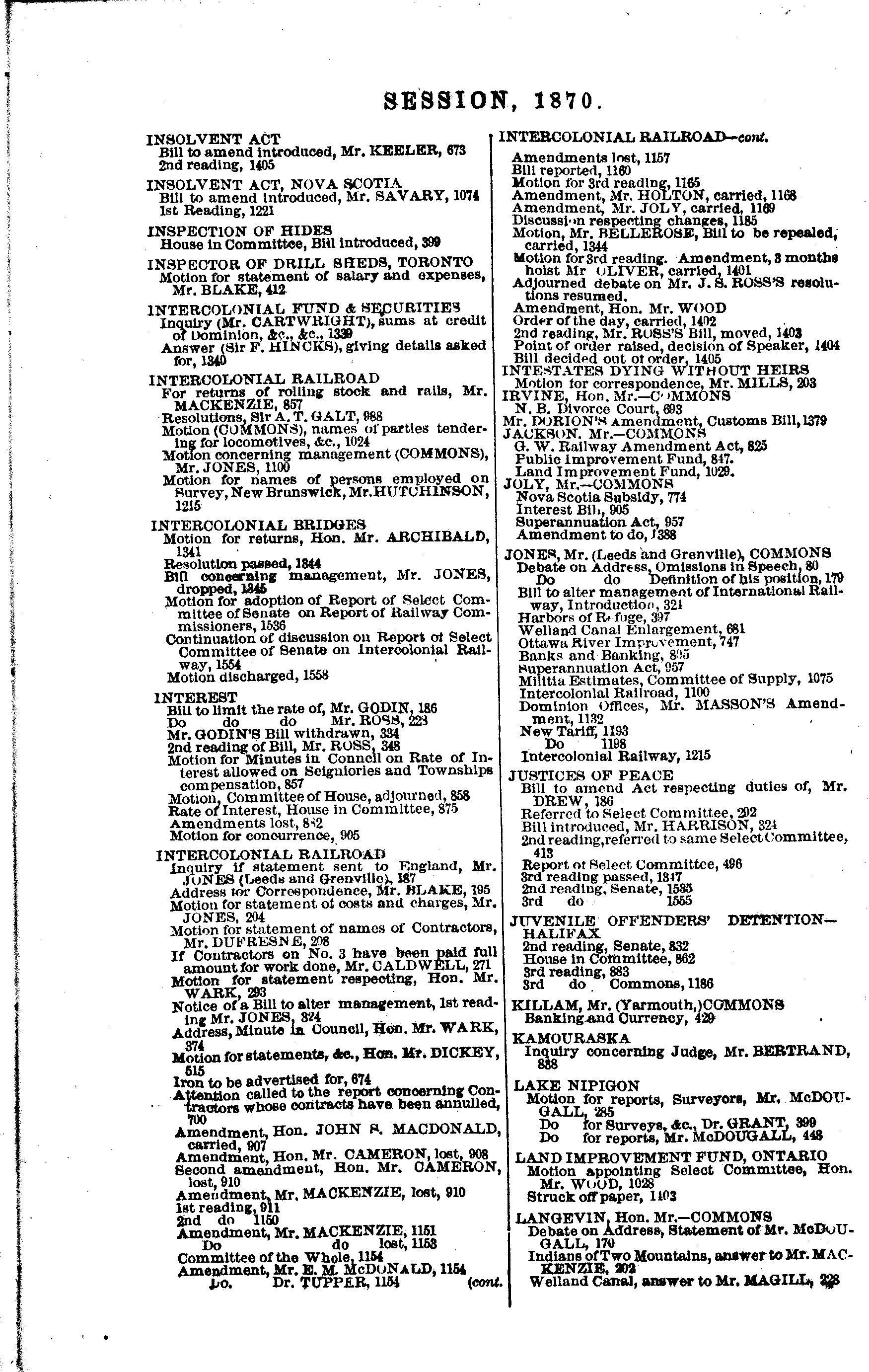 Parliamentary debates, Dominion of Canada, third session, 33 Victoriae, 1870