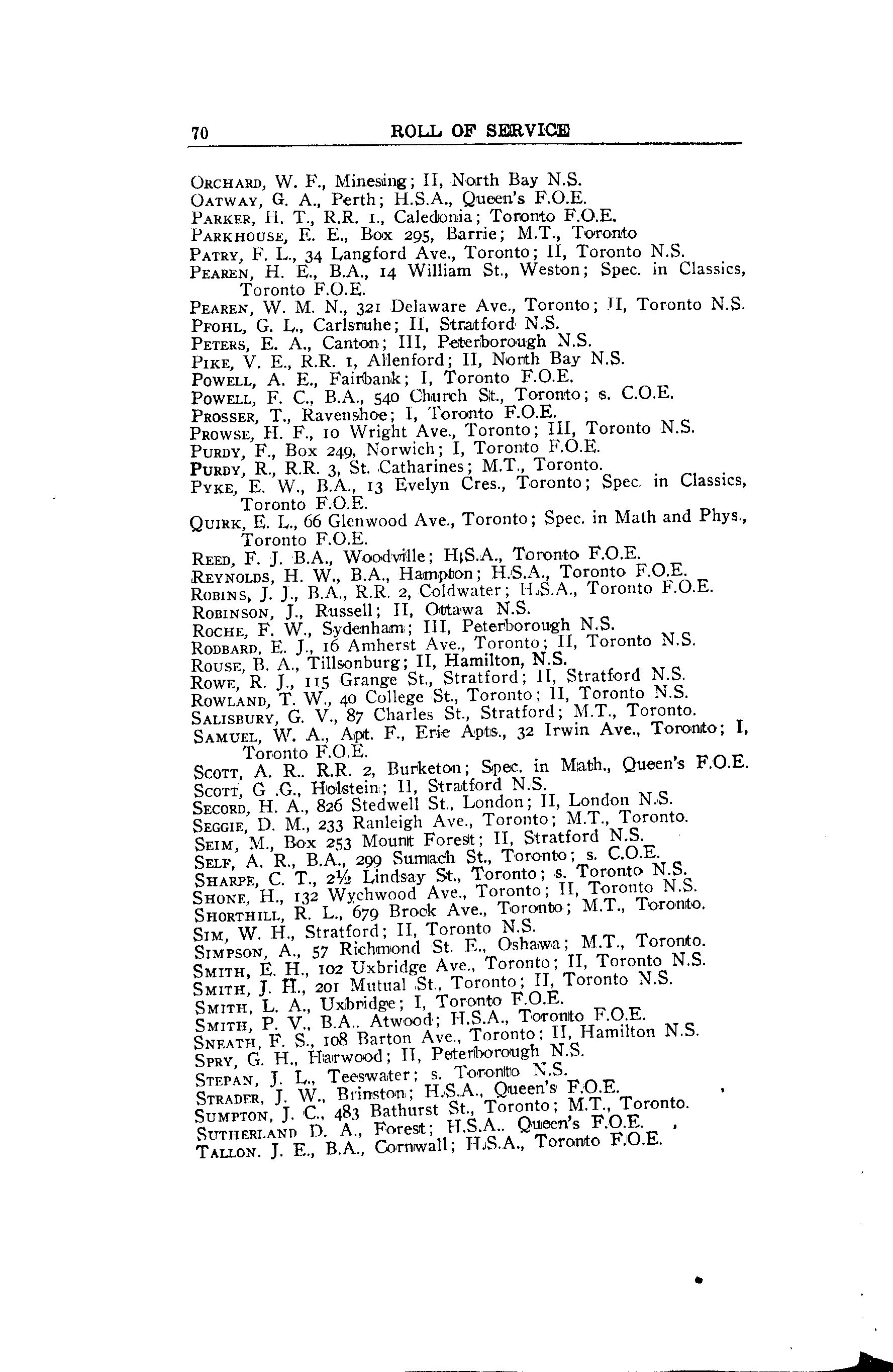 The roll of honour of the Ontario teachers who served in the Great War, 1914-1918.