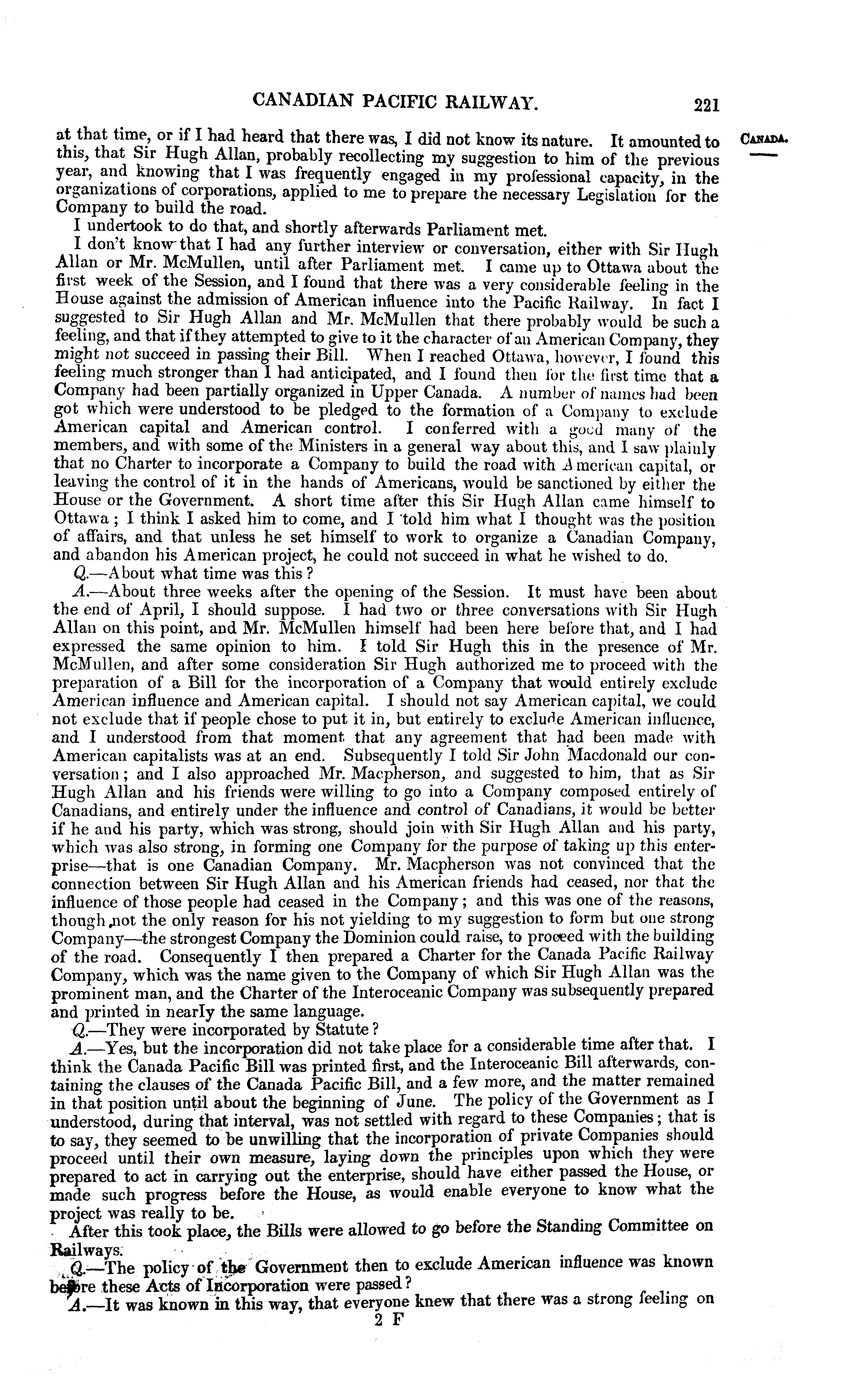 Relates to the Pacific Scandal.Title from title screen."Presented to both Houses of Parliament by Command of Her Majesty, March, 1874."Original issued in series: [Command papers / Great Britain. Parliament] ; Cd. 911.